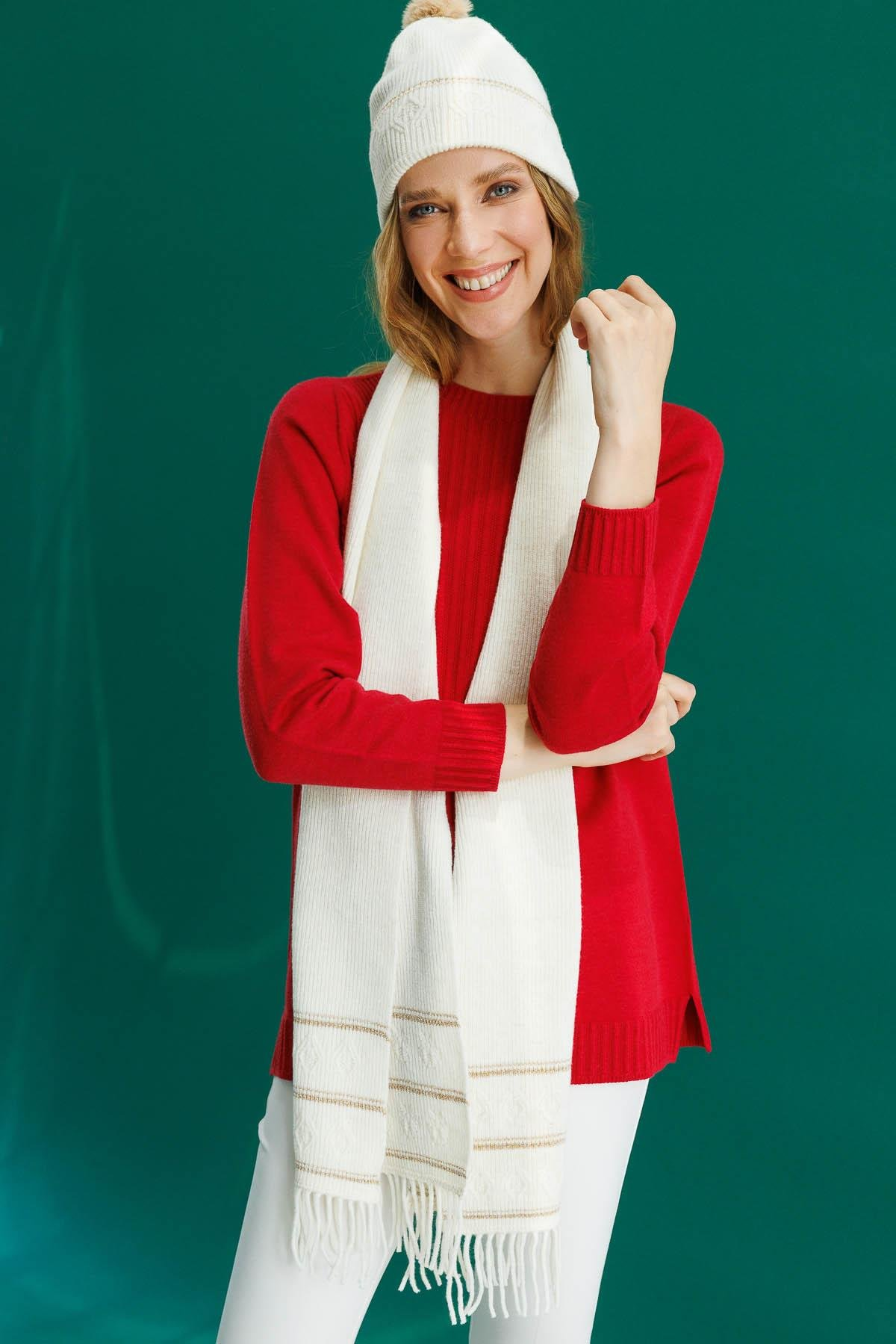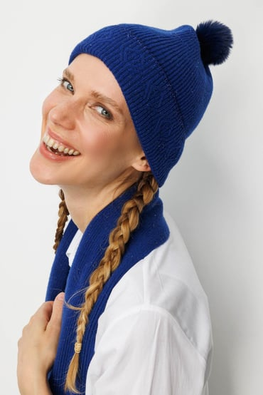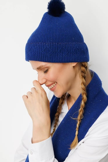 Kadın Simli Jakarlı Ponponlu Yün Şapka Desen