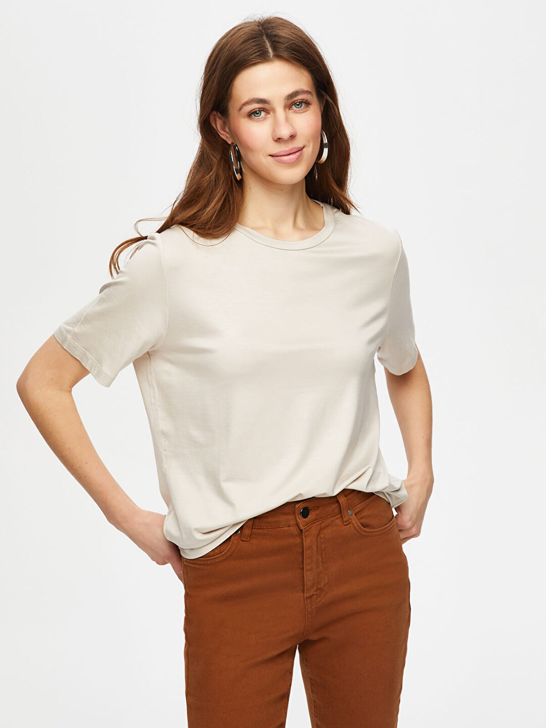 Kadın Yuvarlak Yaka Kısa Kol T-Shirt Faik Sönmez