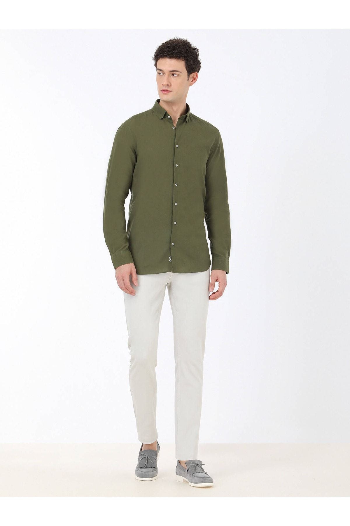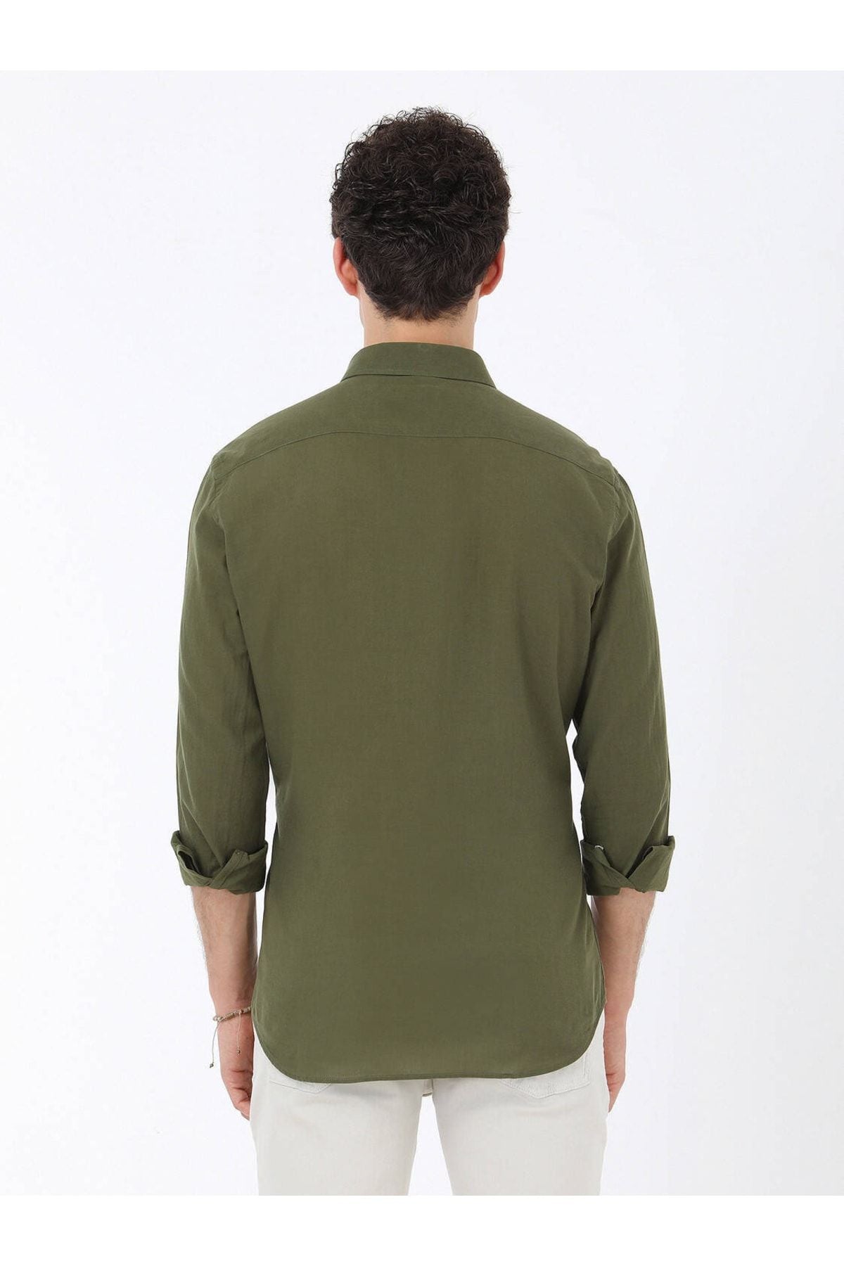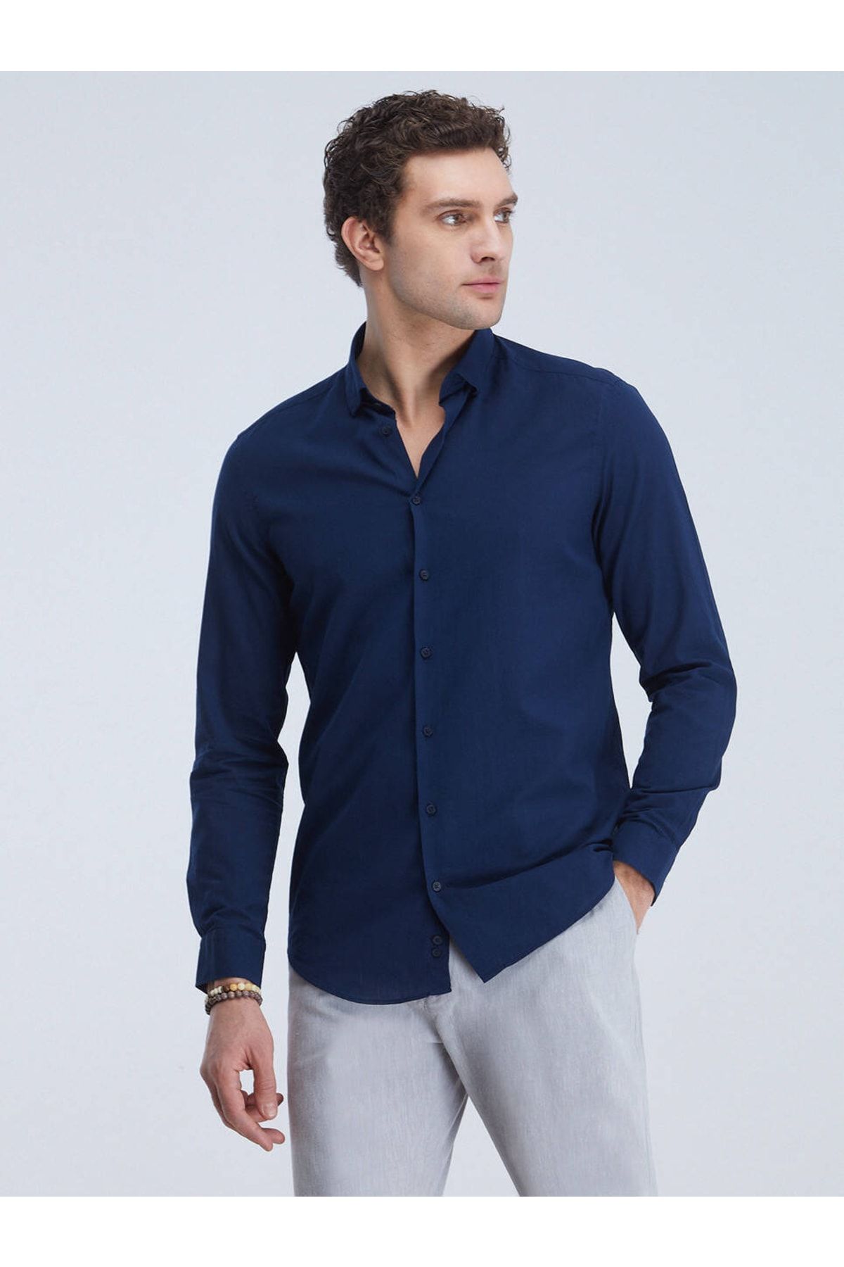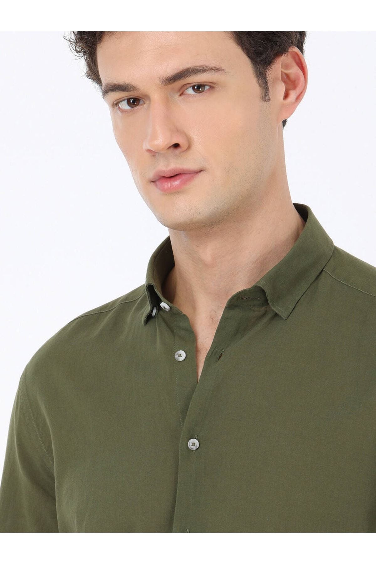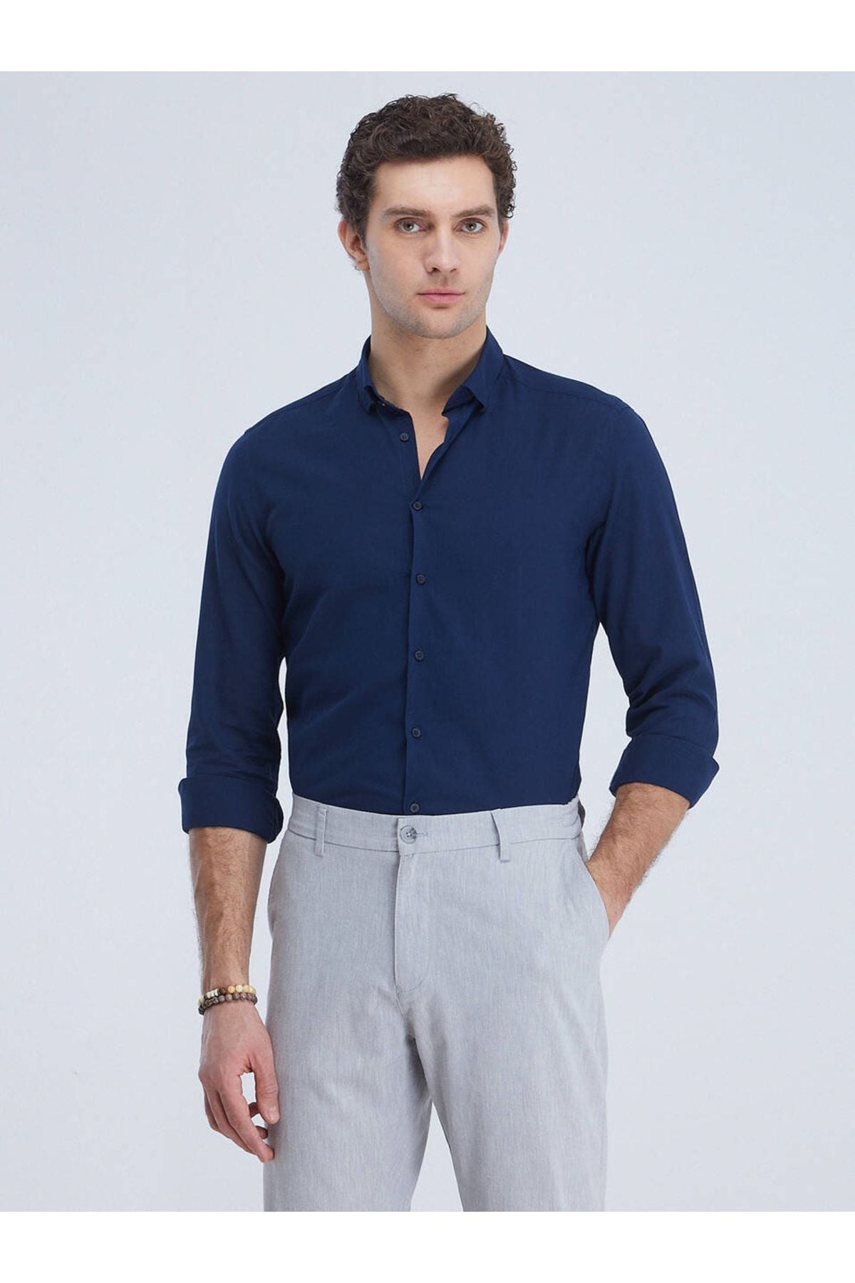 Gömlek; Desen: Düz; Line: Casual; Yaka: Alttan Britli Yaka; Fit: Regular Fit; Karışım: %100 Pamuk;