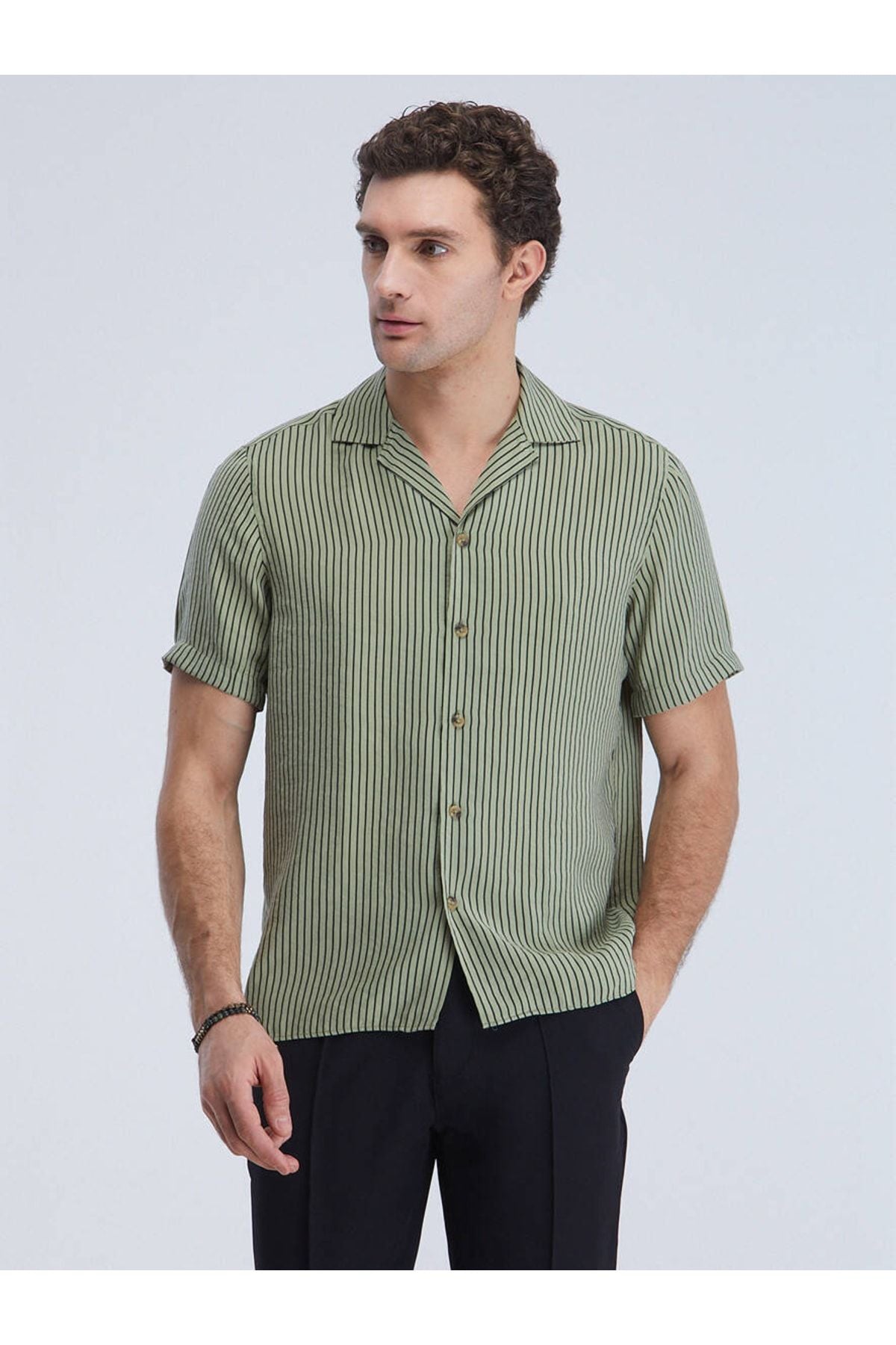Gömlek; Desen: Çizgili; Line: Casual; Yaka: Özel Yaka; Fit: Regular Fit; Karışım: %84 Modal, %16 Polyester;