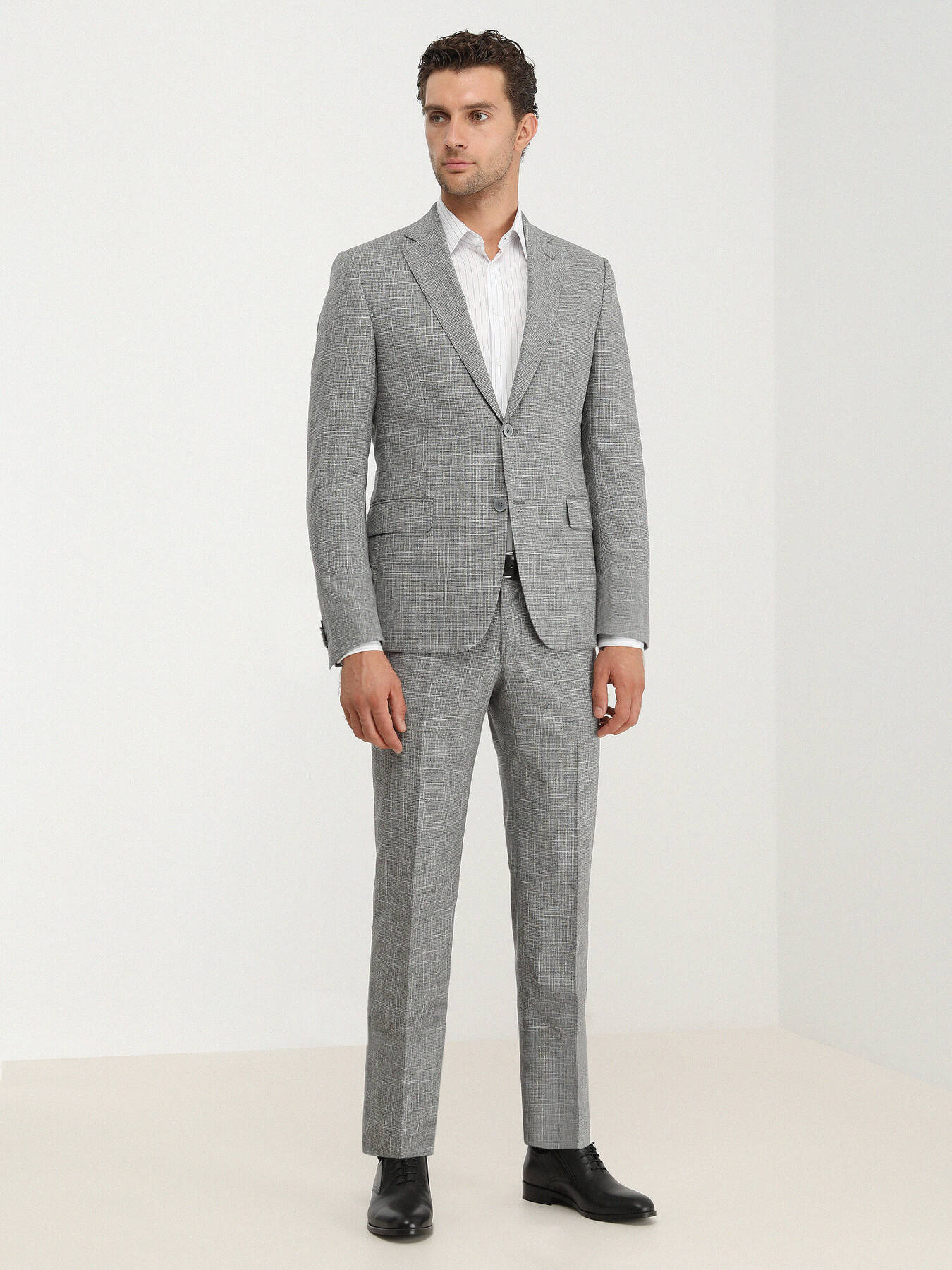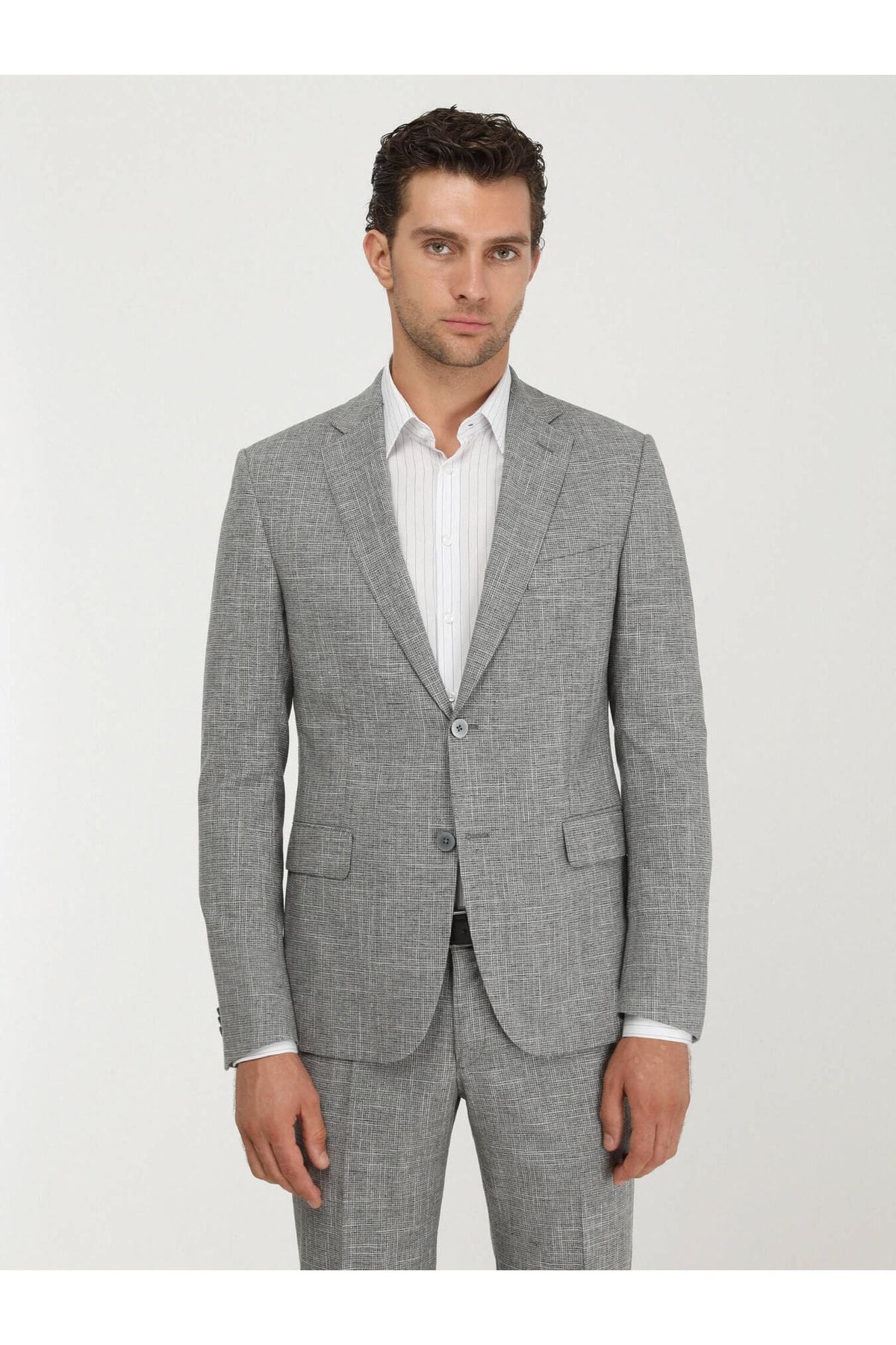 Takım Elbise; Desen: Mikro; Line: Klasik; Yaka: Kelebek Yaka; Paça: Klasik Paça; Fit: Modern Fit; Yırtmaç: Tek Yırtmaç; İç Astar: Yarım Astarlı; Çalışma Tipi: Soft; Cep: Kapaklı Cep; Karışım: %43 Pamuk, %26 Saf Yün, %18 Viskon, %11 Keten, %2 Elastan;