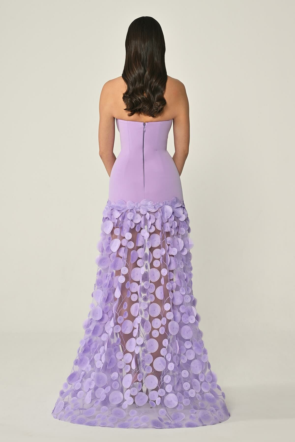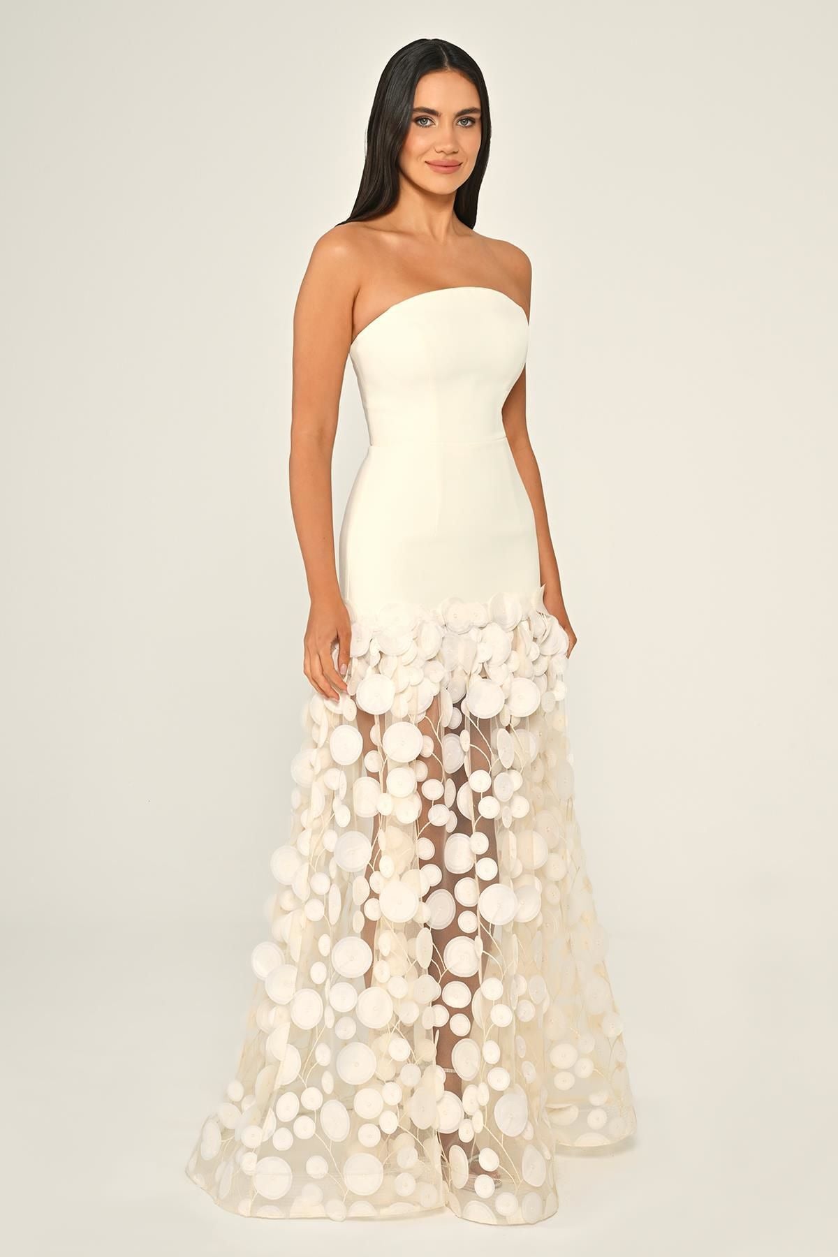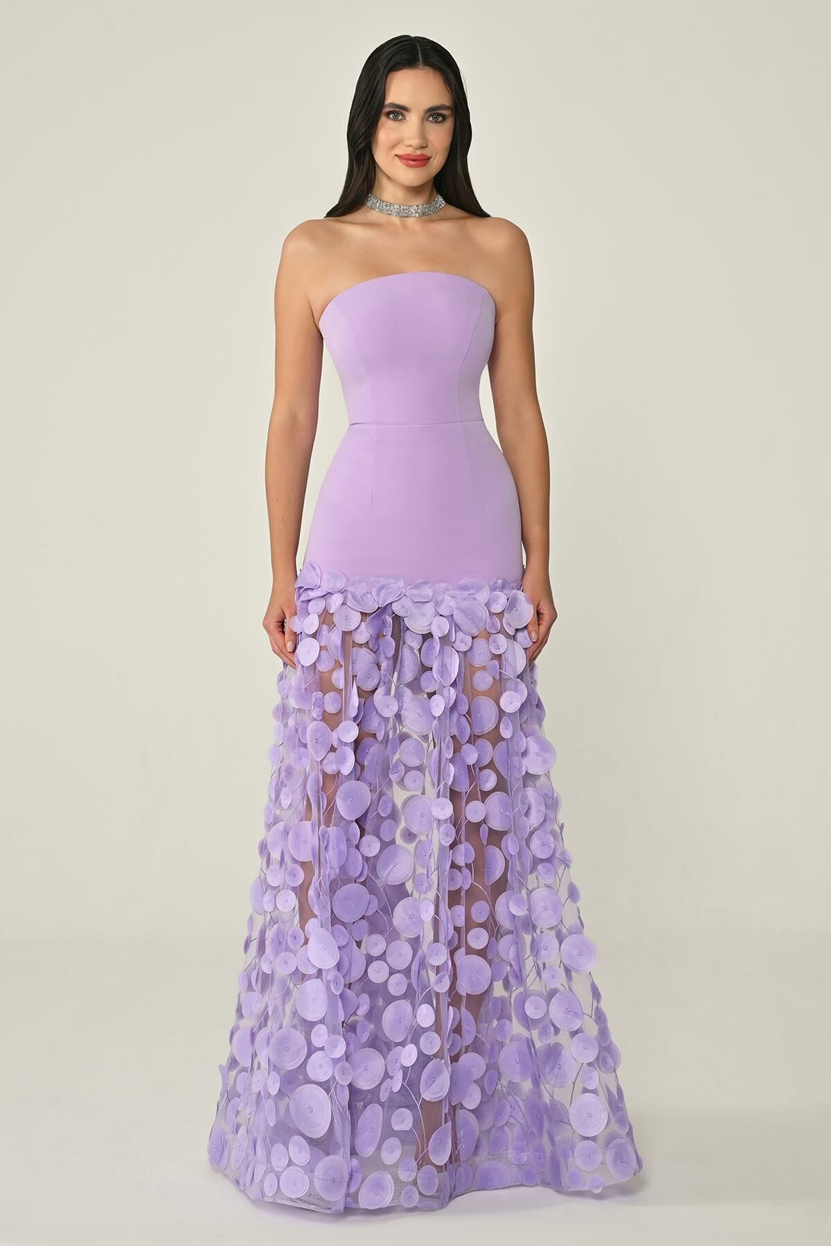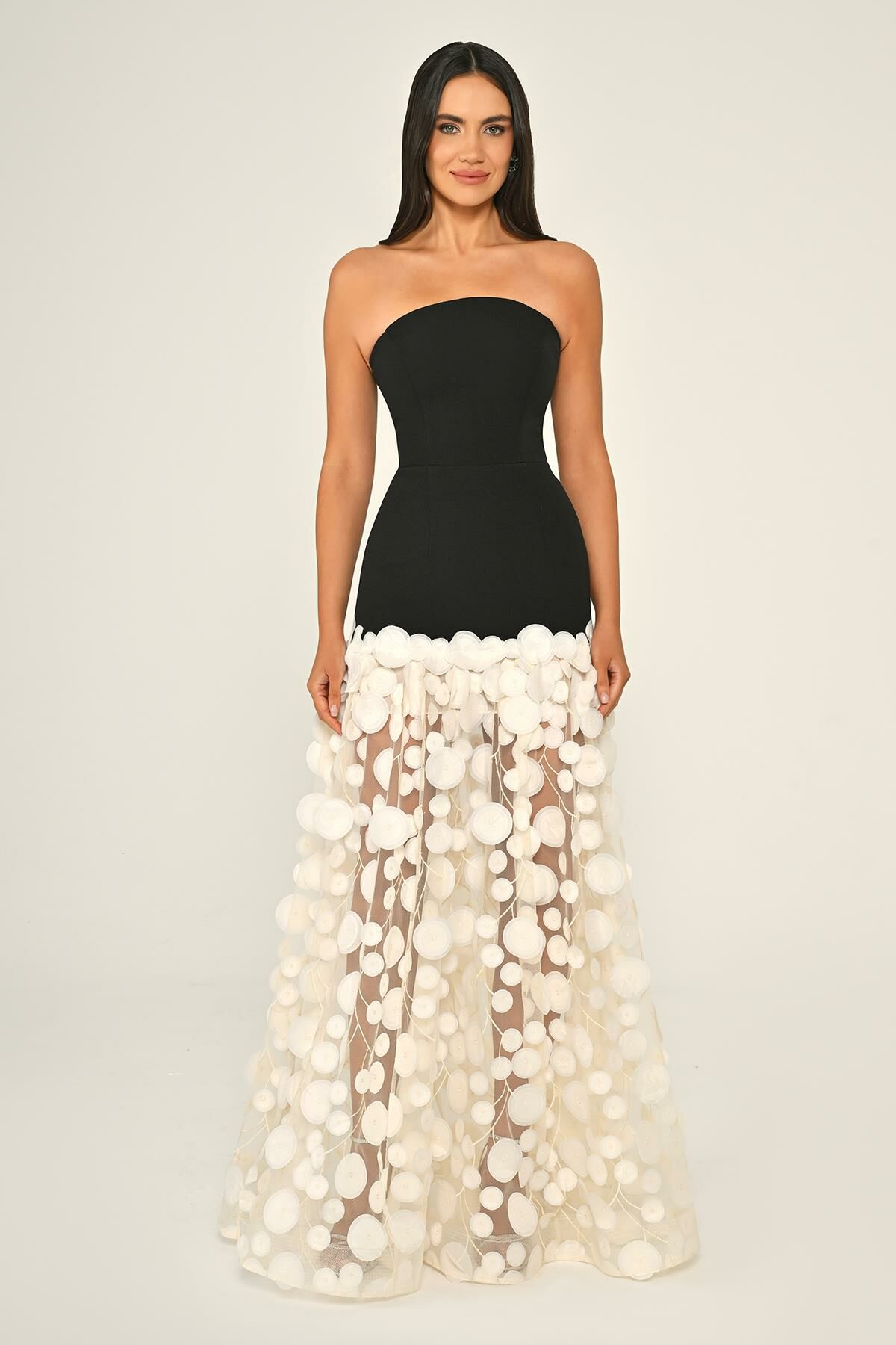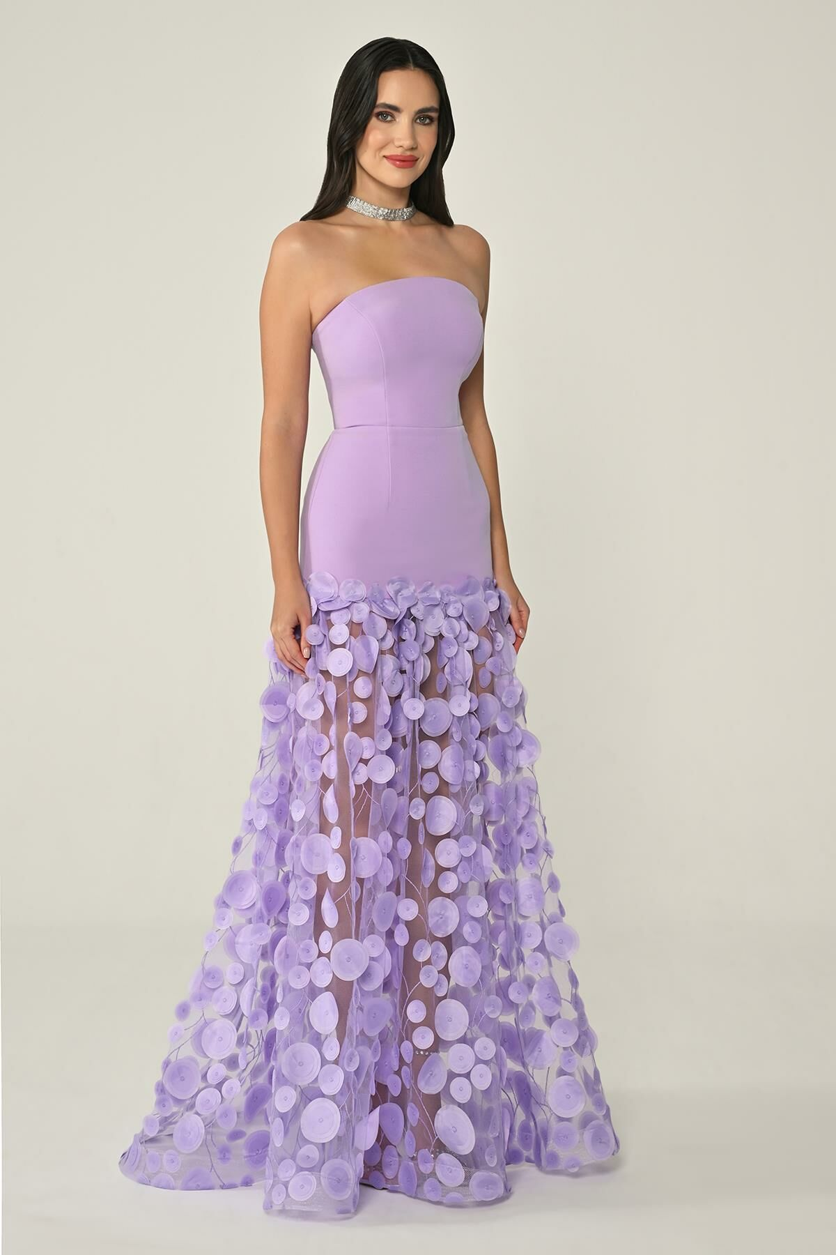 Krep Eteği 3 Boyutlu Tül Uzun Abiye Elbise Alfa Beta B7067