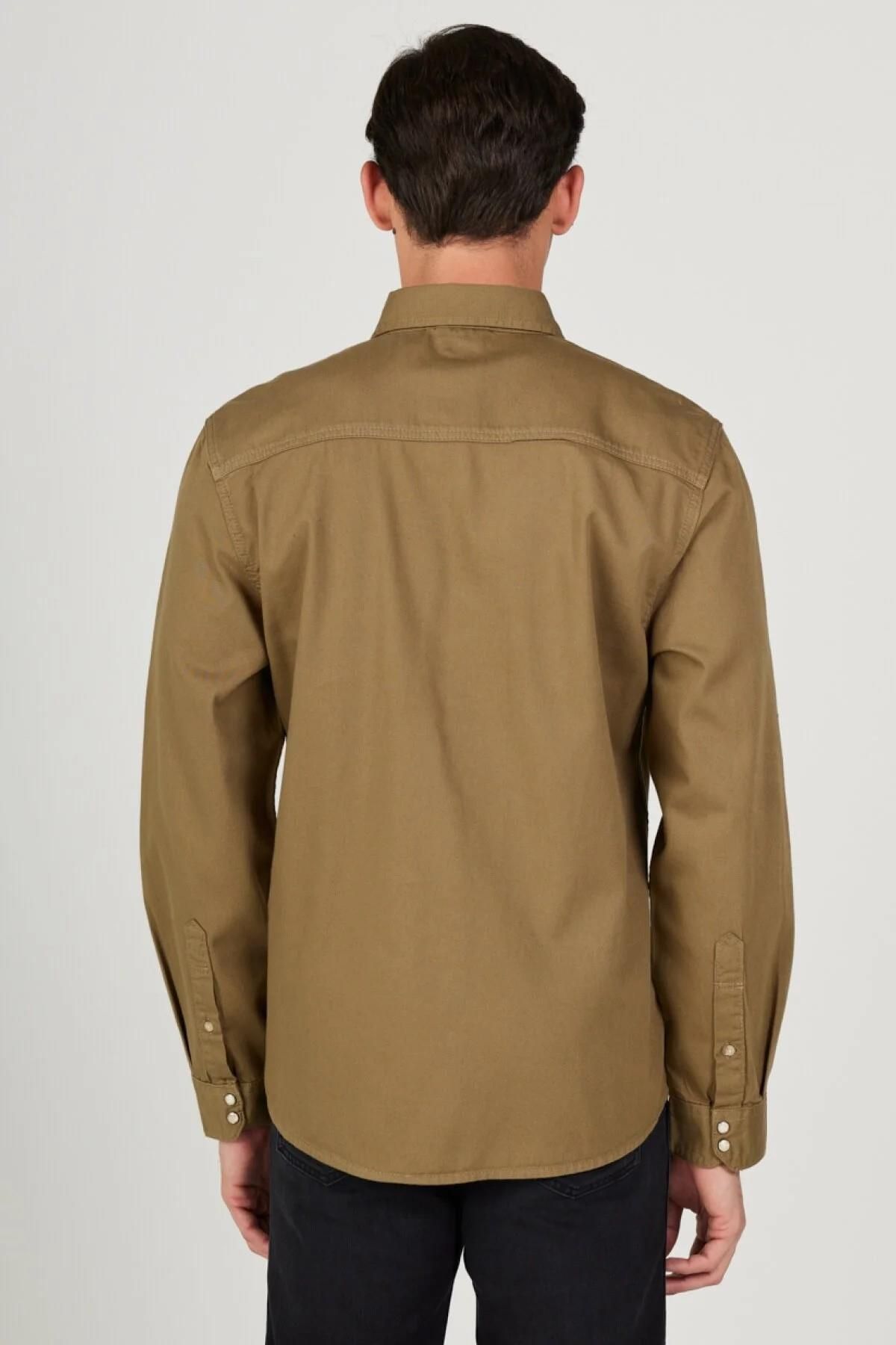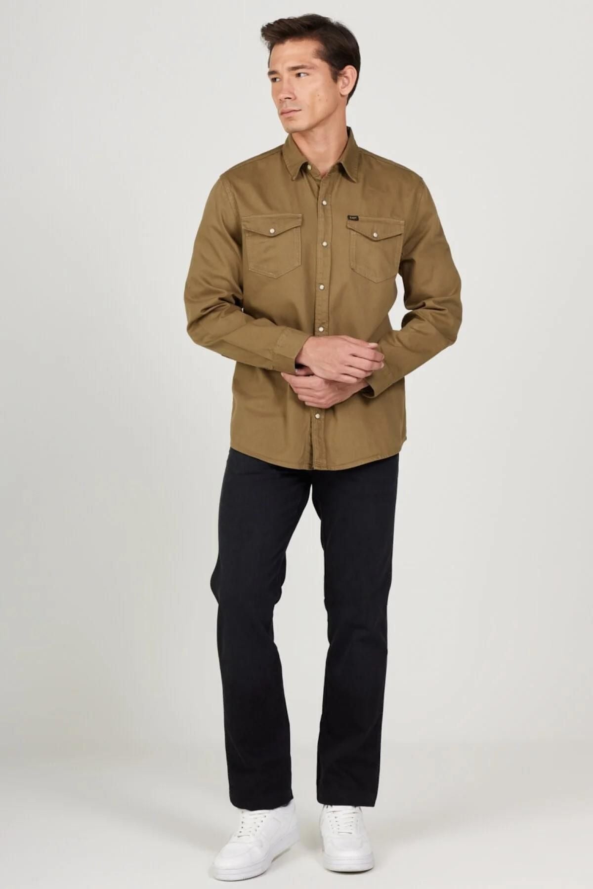 Lee - Regular Fit Normal Kesim %100 Pamuk Yeşil Uzun Kollu Gömlek;