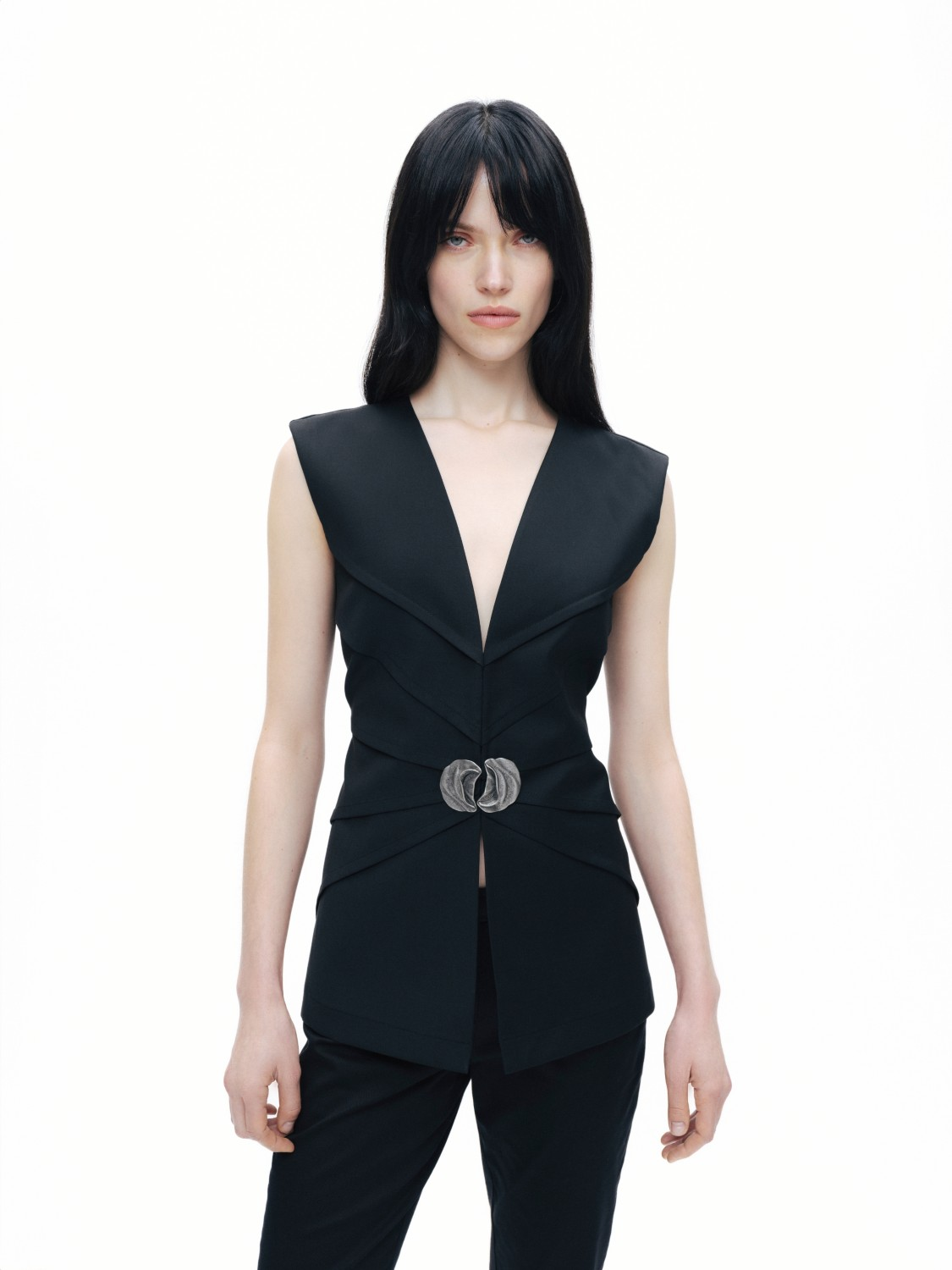 Ürün Açıklaması: Regular fit, tam kalıp, astarlı, gizli kanca kapamalı, v yaka, pileli, metal aksesuar detaylı yelek