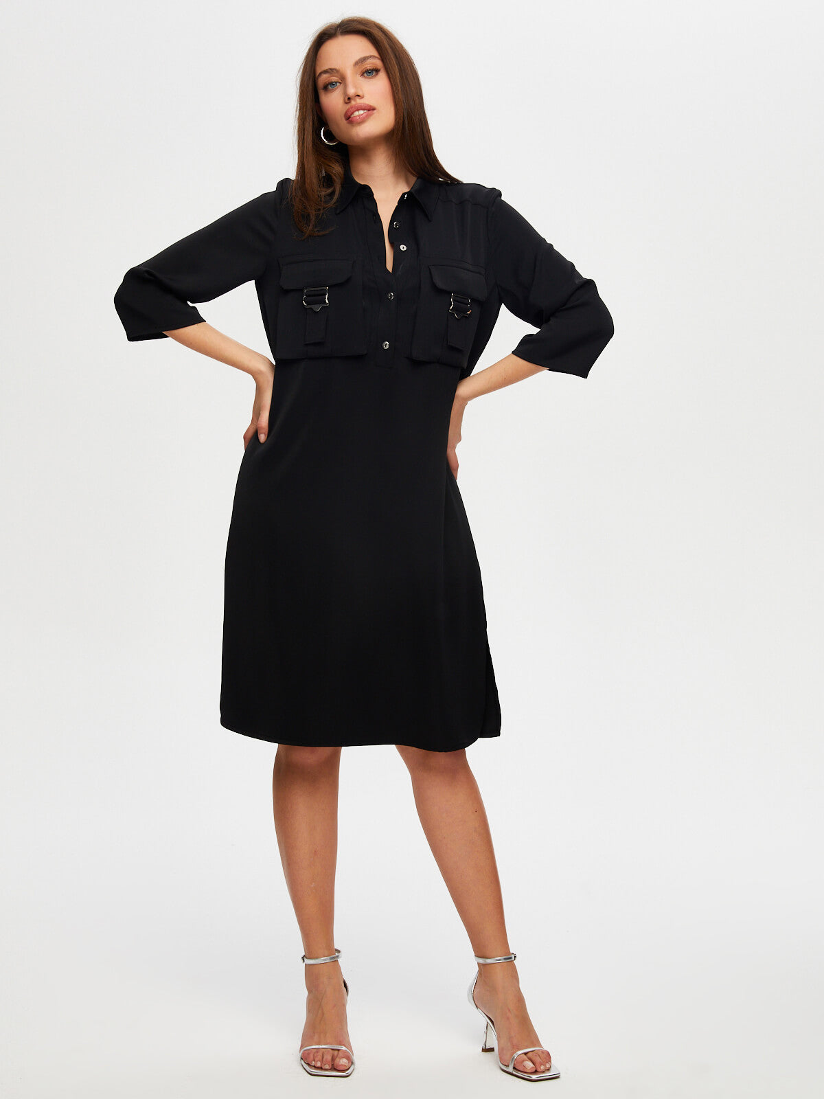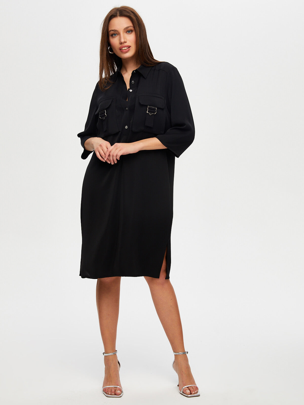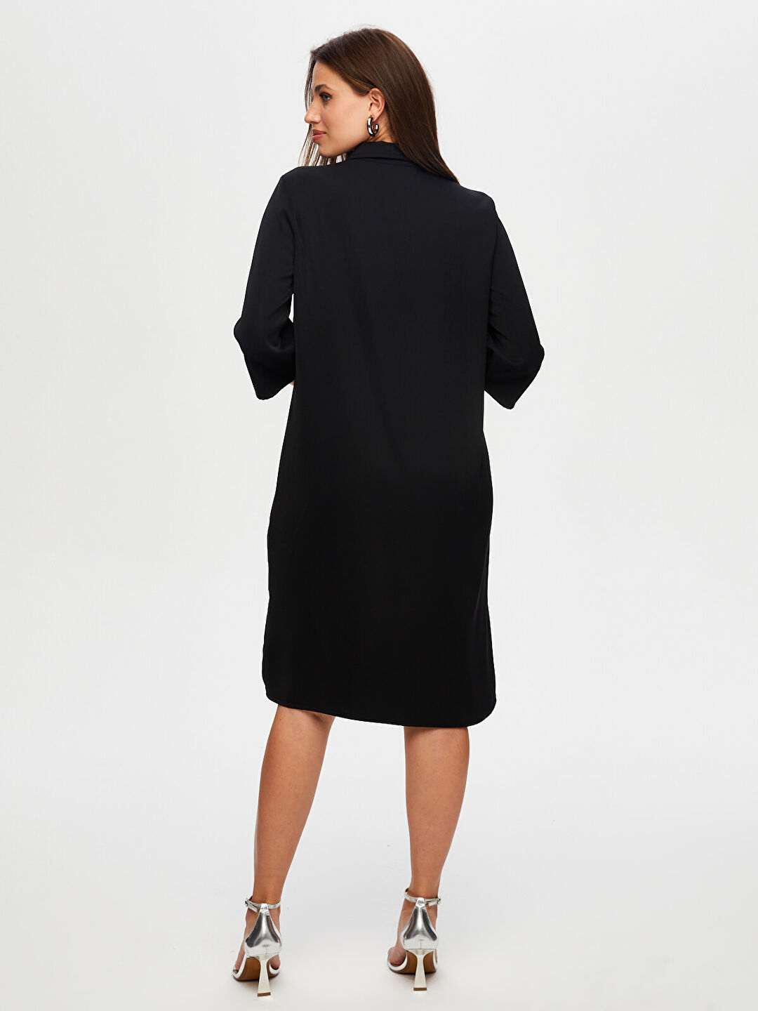 Metal Toka Detaylı 3/4 Kol Dokuma Elbise Faik Sönmez%100 Polyester