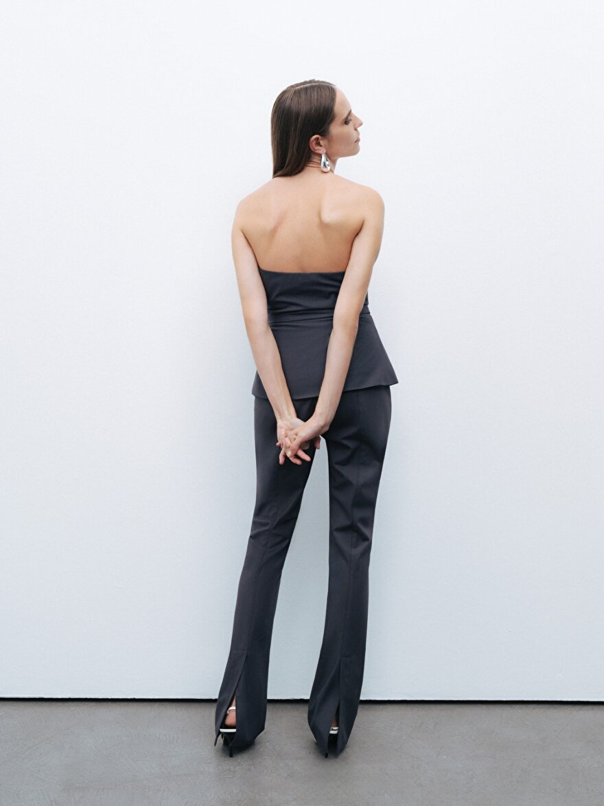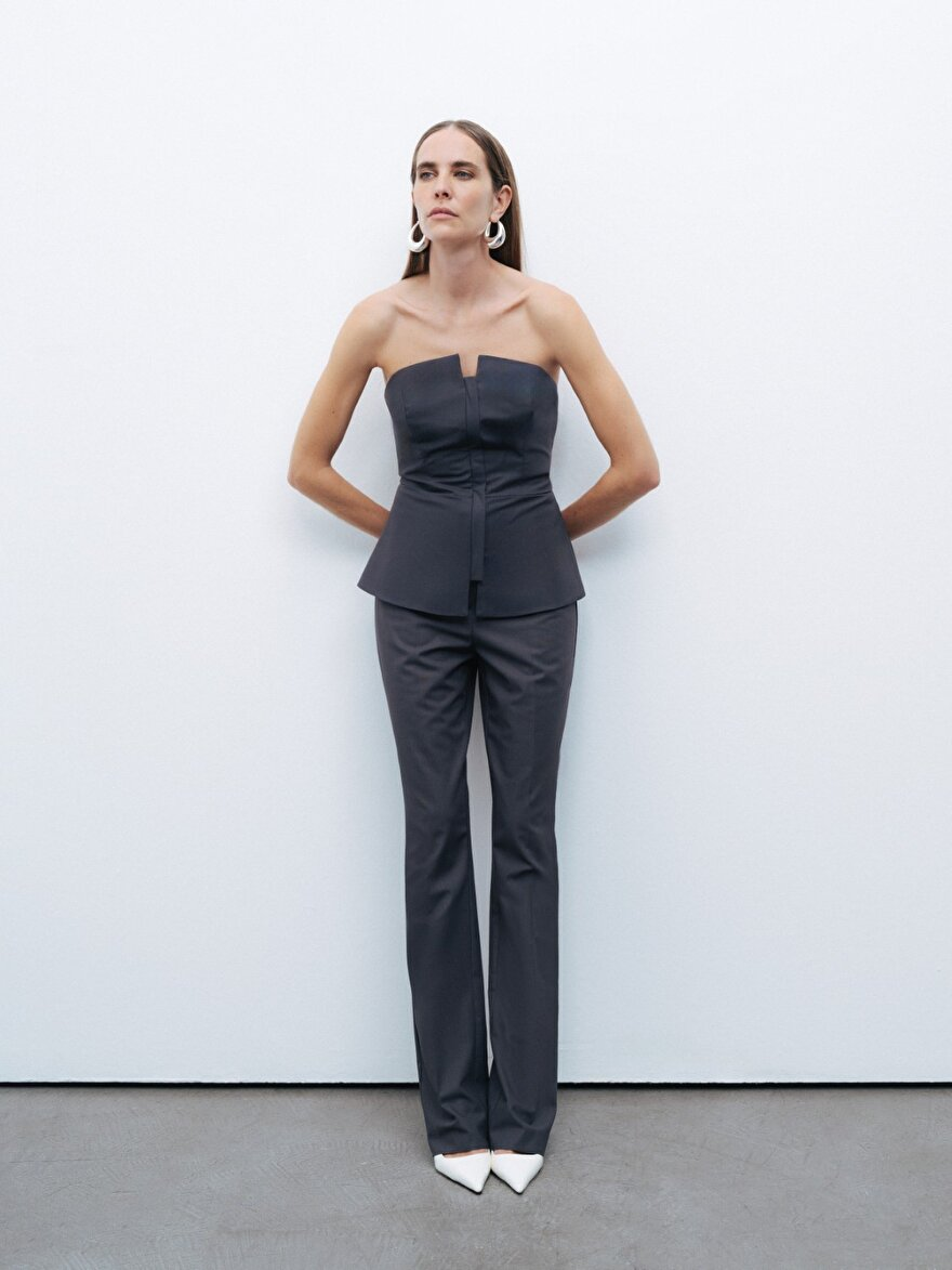 Ürün Açıklaması: Slim fit, astarlı, dokuma, kolsuz, önden gizli fermuar kapama tasarımlı korse görünümlü bluz
