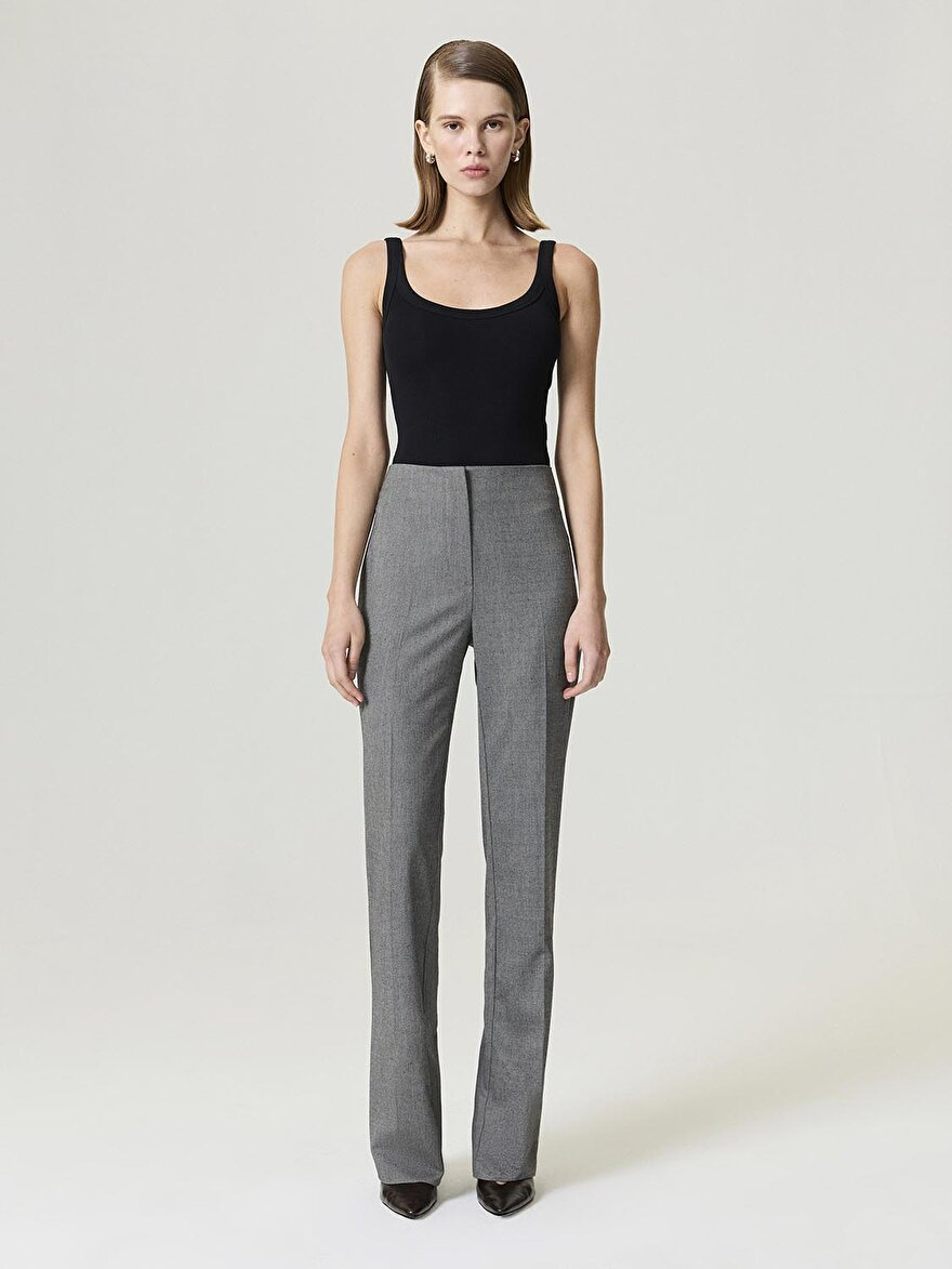 Şık, minimal ve vücuda oturan kesimli Yan Yırtmaçlı Özel Kesim Pantolon, klasik dikiş ve modern dokunuşun mükemmel birleşimini sunar. Astarsız dokuma kumaştan üretilen, normal kesim ve orta bel bel yapısına sahip bu pantolon, gizli fermuar, arkada biyeli cep detayı (işlevsel olmayan) ve zarif bir görünüm için paçalardaki zarif yırtmaçlarla donatılmıştır. Hem ofis şıklığı hem de akşam şıklığı için idealdir; iş odaklı bir görünüm için desenli bluzlar veya büyük beden örgülerle kombinleyebilirsiniz.
