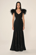 Omuzları Otrişli Bel Sırt ve Eteği Payetli Örme Kumaş Uzun Abiye Elbise