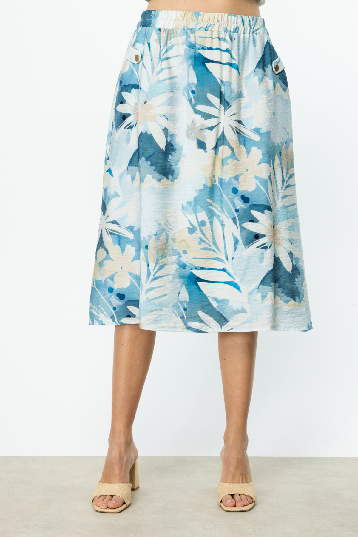 Ürün Özellikleri:Beli lastikli, midi boy, desenli, volanlı,yandan cepli, astarlı