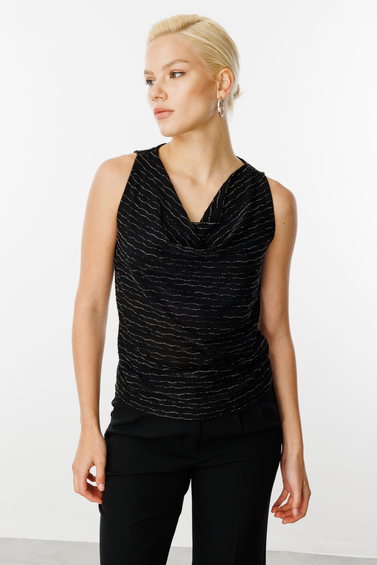 Ürün Özellikleri:Degaje yaka, kolsuz, simli, astarsız
