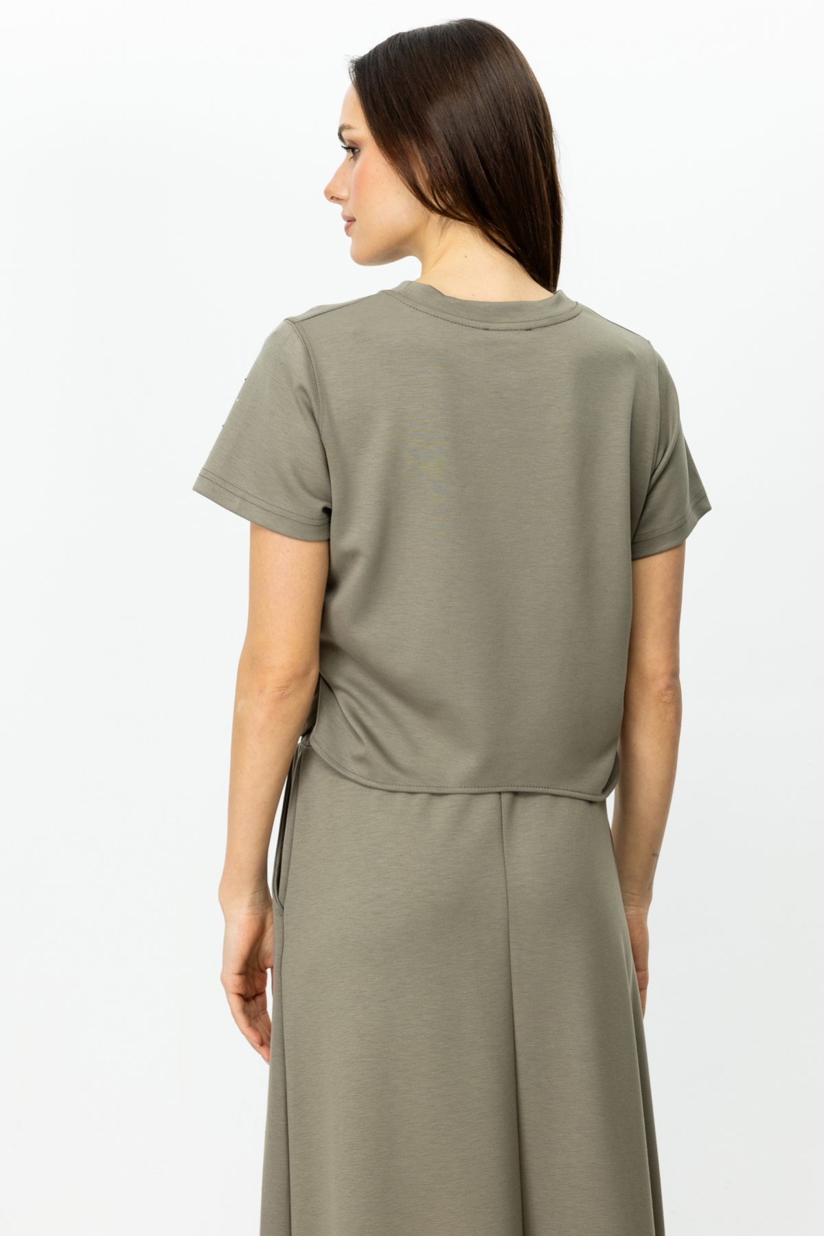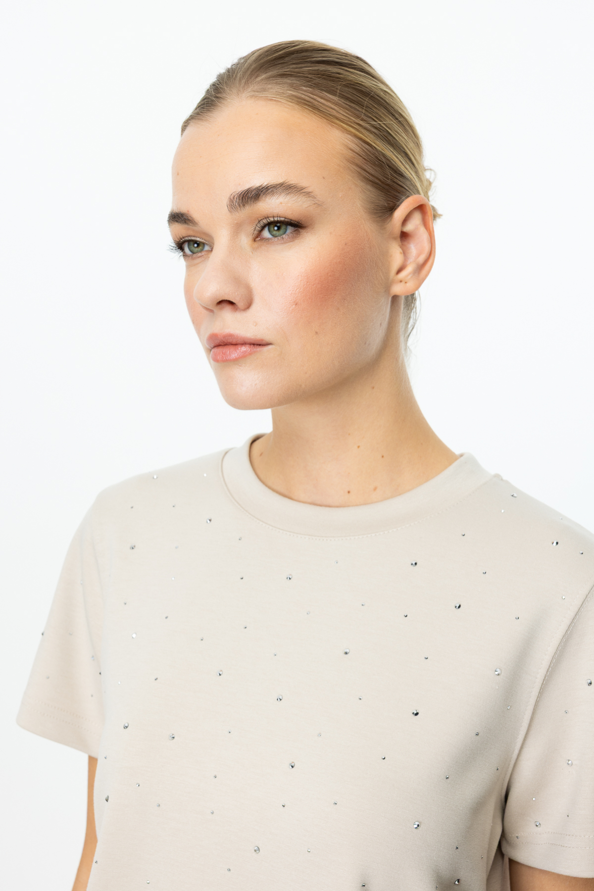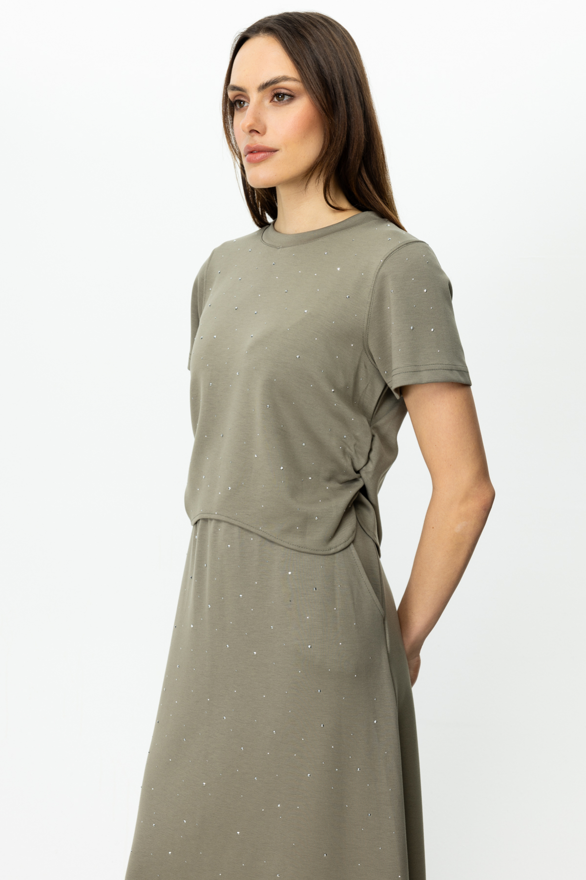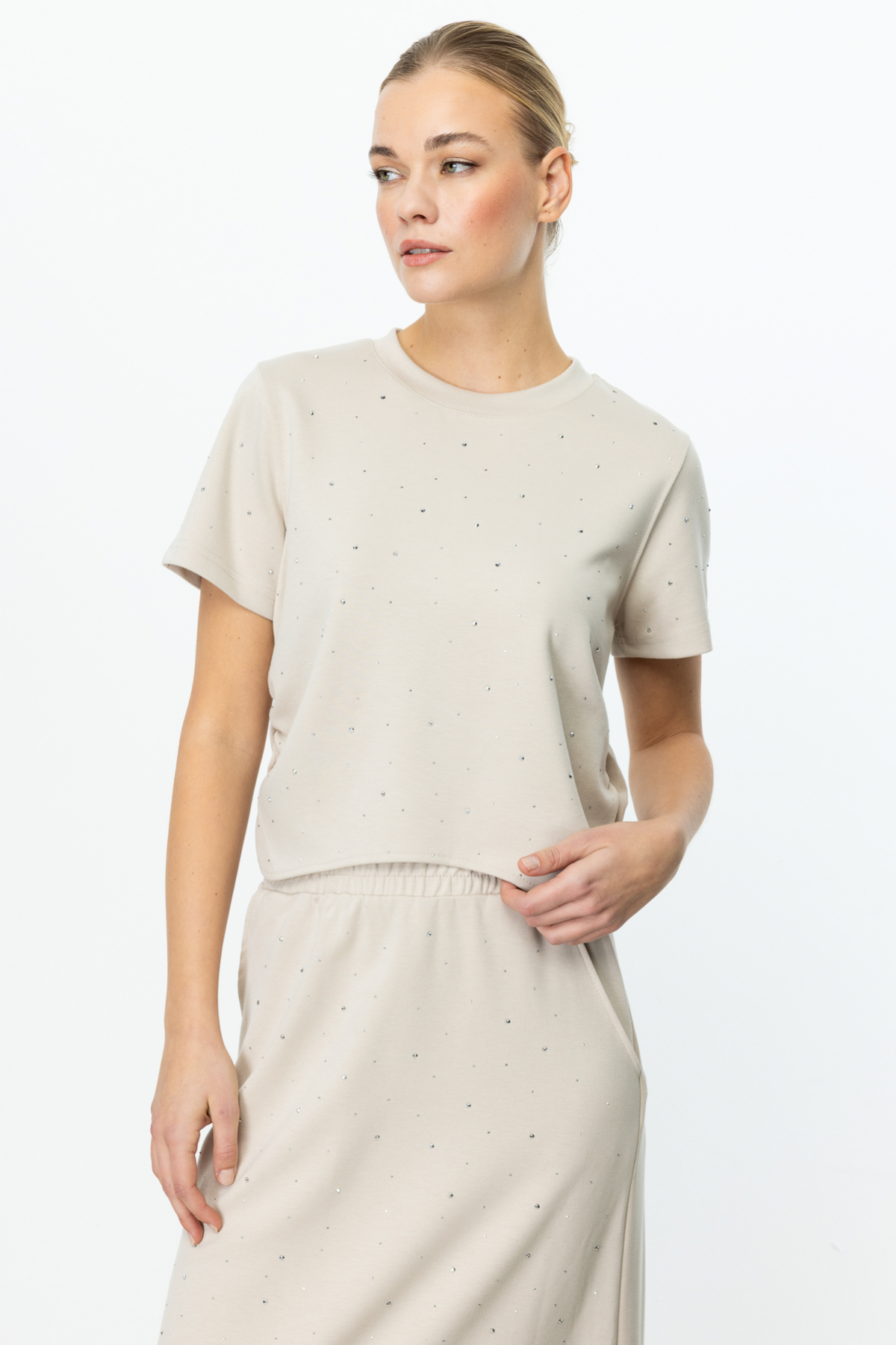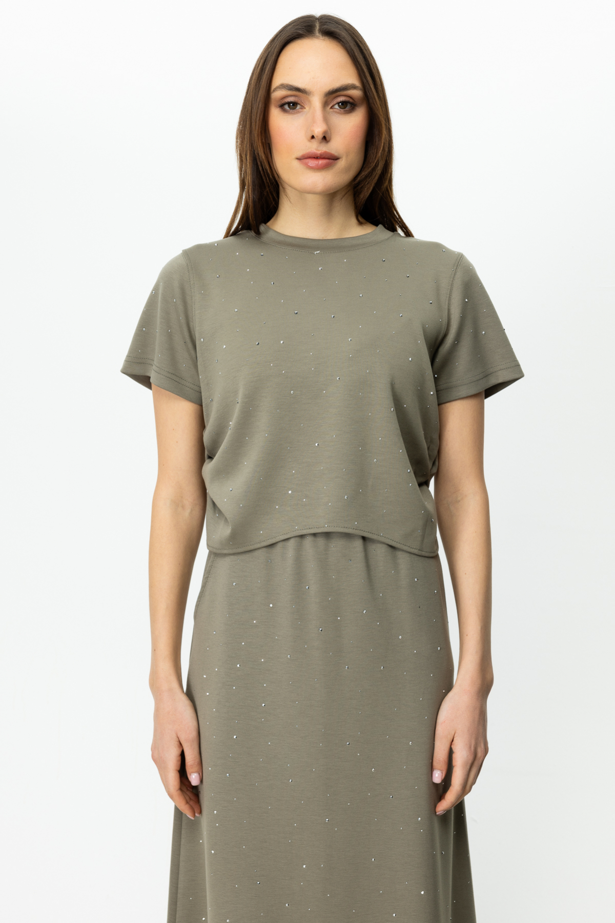 Ürün Özellikleri:Sıfır yaka, taşlı, kısa kol, yanları büzgülü