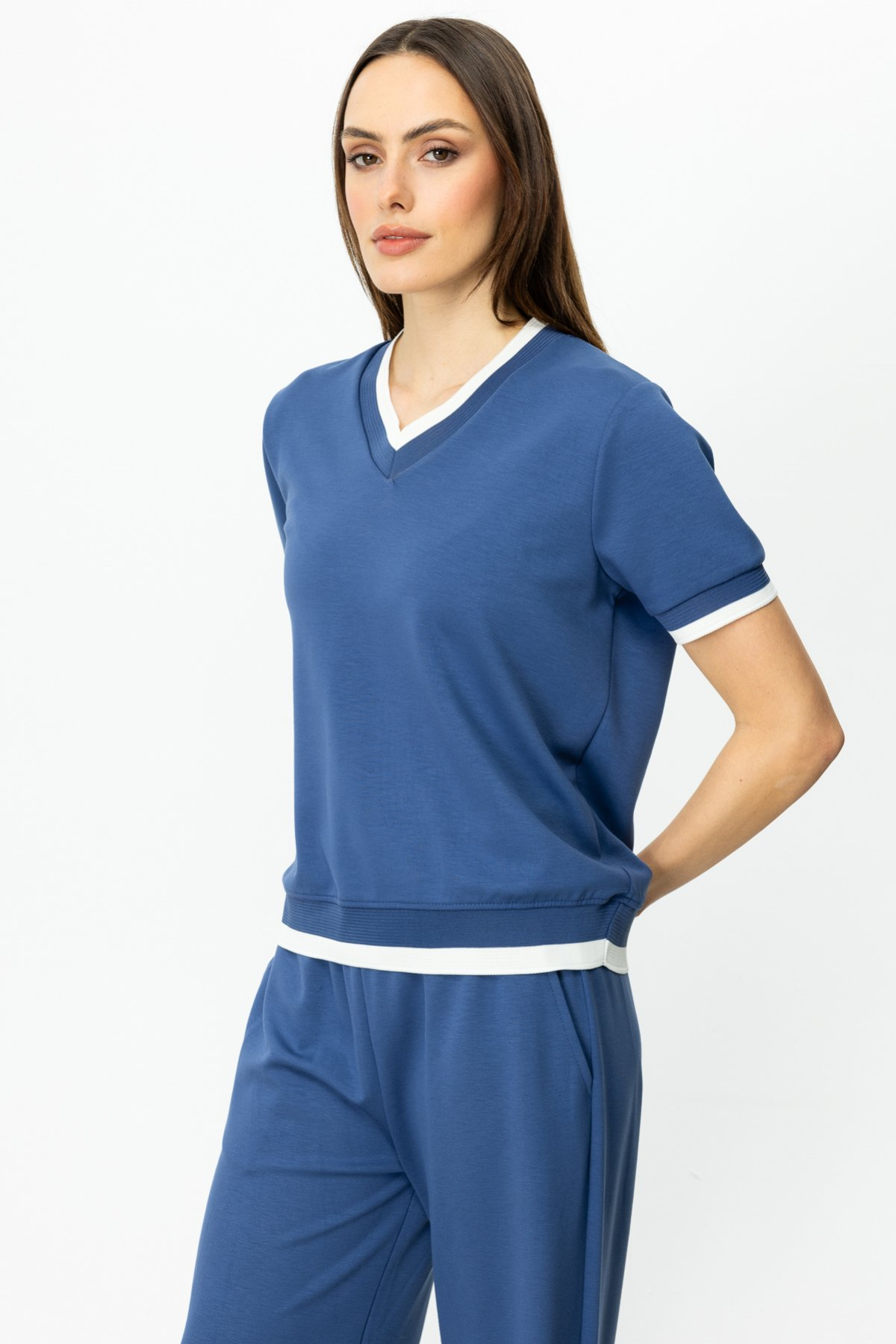 Ürün Özellikleri:V yaka, kısa kollu, ribanalı, astarsız