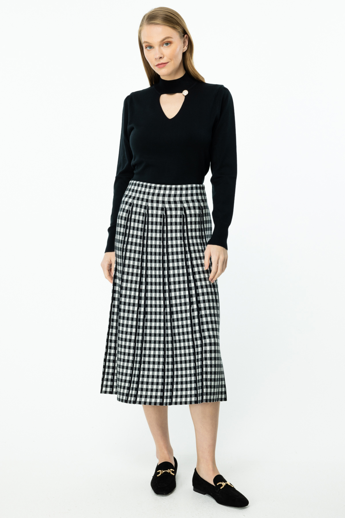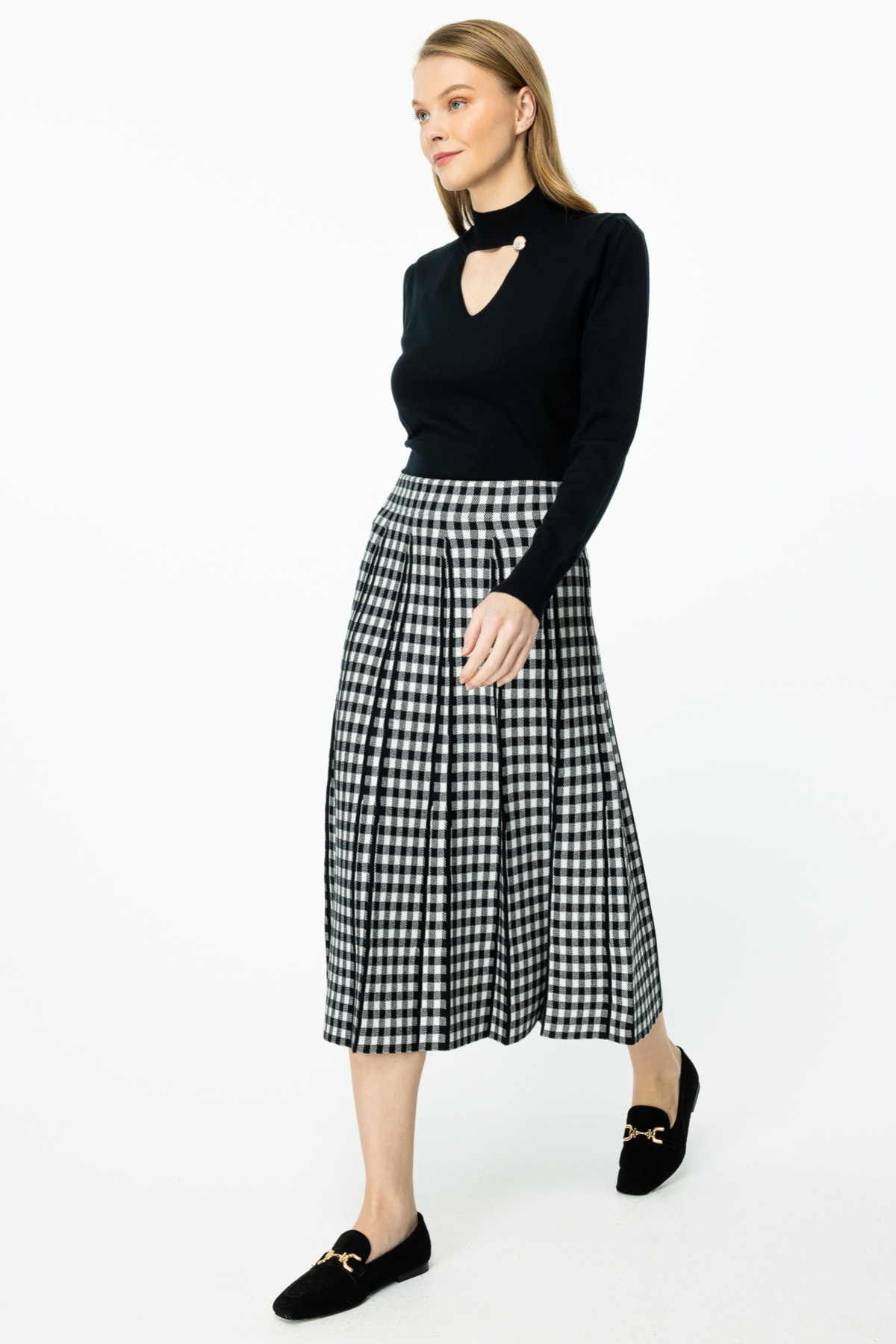 Beli lastikli, ekoseli, midi boyÜrün Kalıbı: Tam KalıpÜrün Kalınlığı: KalınÜrün Boyu: 80 cmKumaş İçeriği: %46modal %40 poliakrilik...