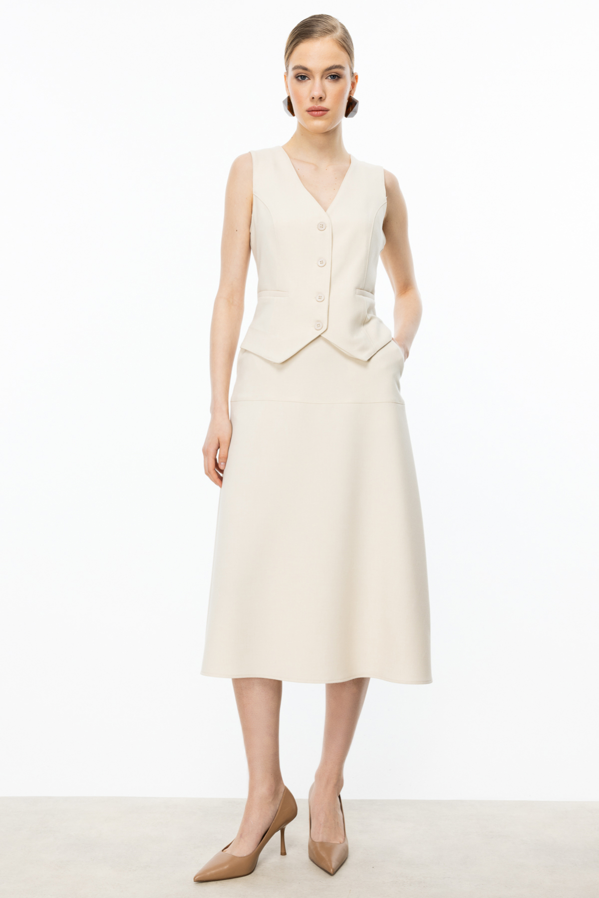 Ürün Özellikleri:Kemerli, yandan cepli, astarsız, midi boy, arka kısmı fermuarlıÜrün Kalıbı: Tam KalıpÜrün Kalınlığı: İnceÜrün Boyu: 84...