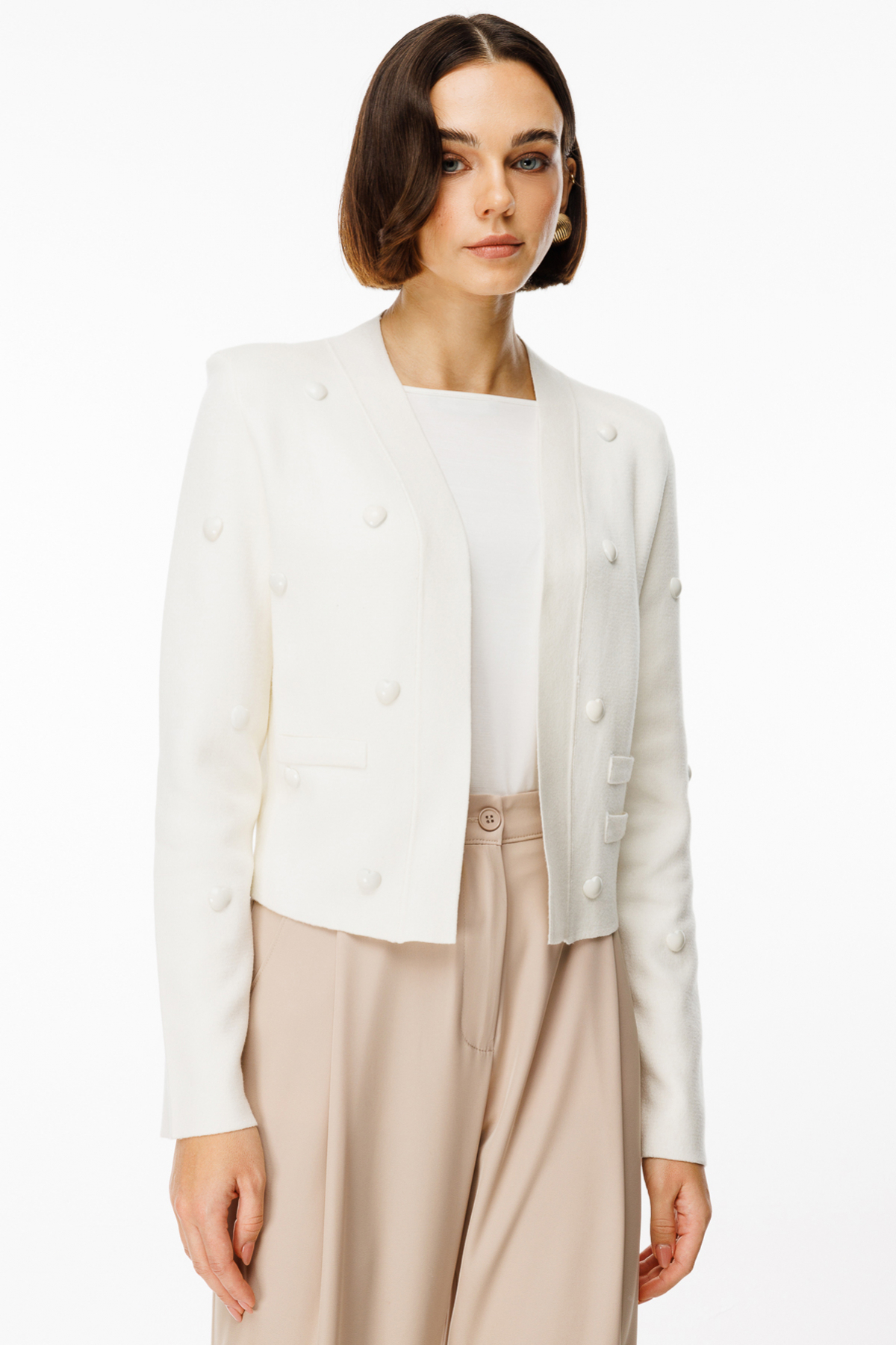 Önü açık, kalpli zımba detaylı, uzun kol