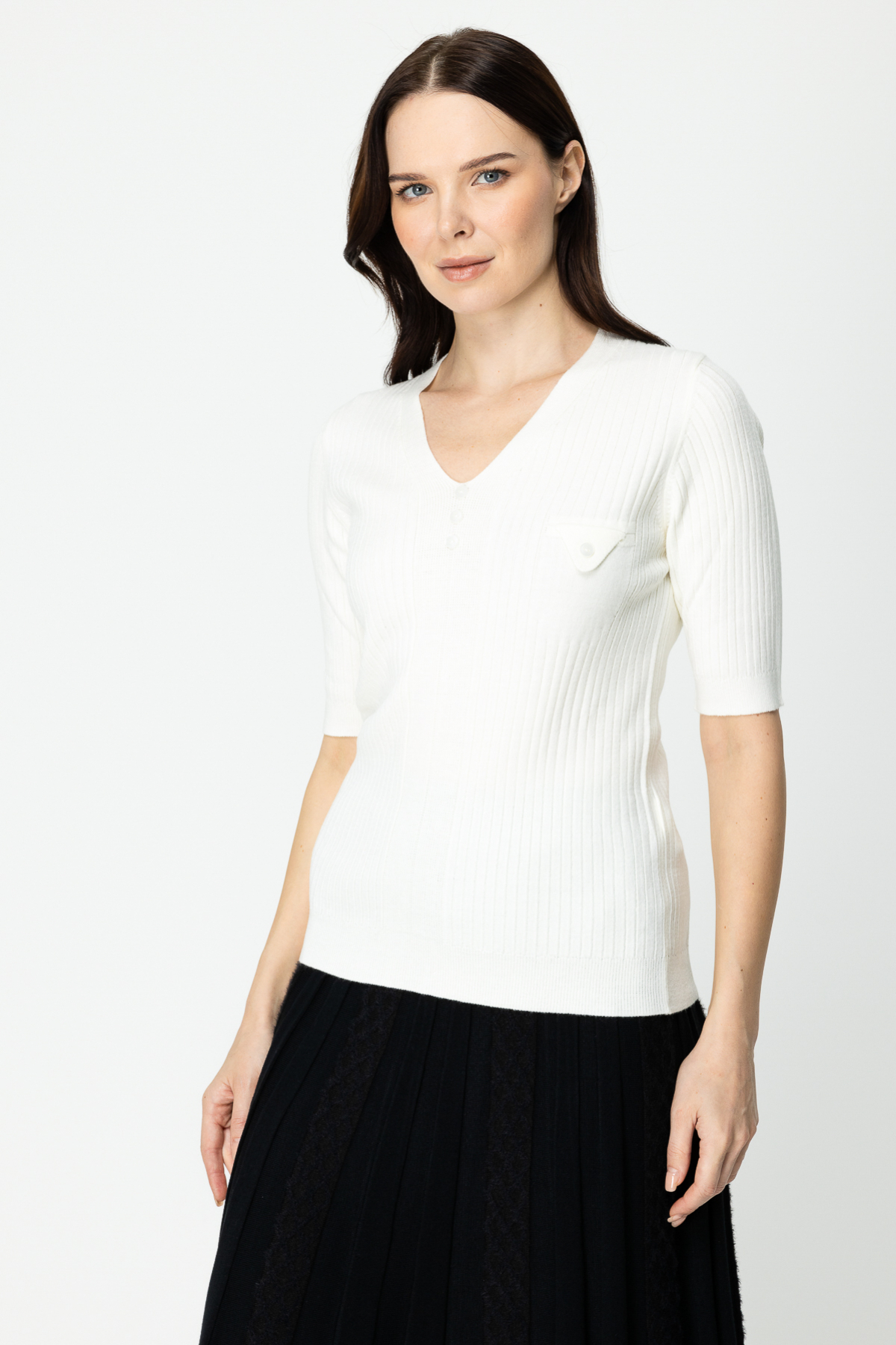 V yaka, yakası düğmeli, yarım kol, fitilli