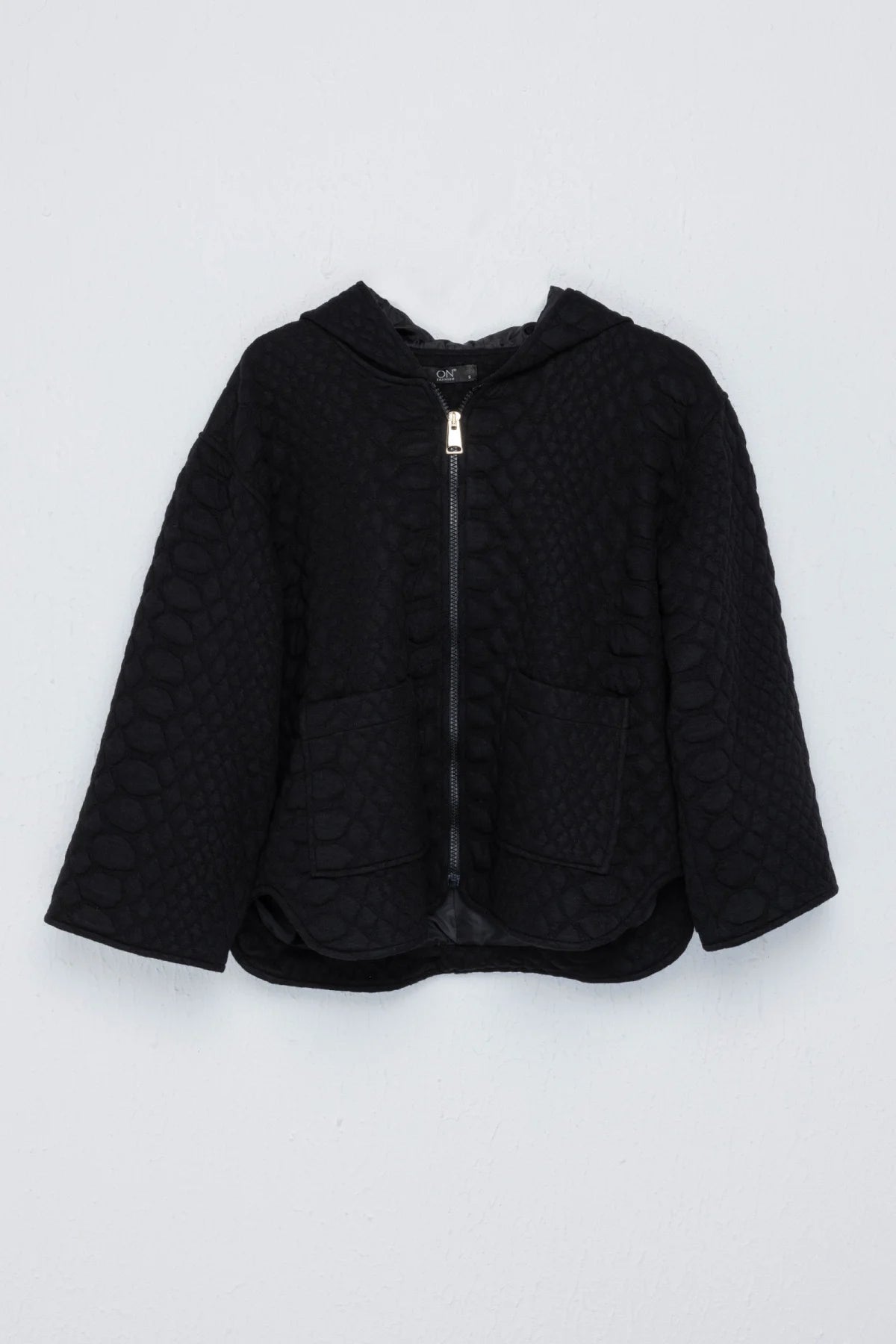 Ürün Özellikleri:; Kapüşonlu; Fermuarlı; Geniş yarım kollu; Kabartma dokulu kumaş; Önden torba cepli; Astarlı; Likralı; Ürün Kalıbı:Tam...