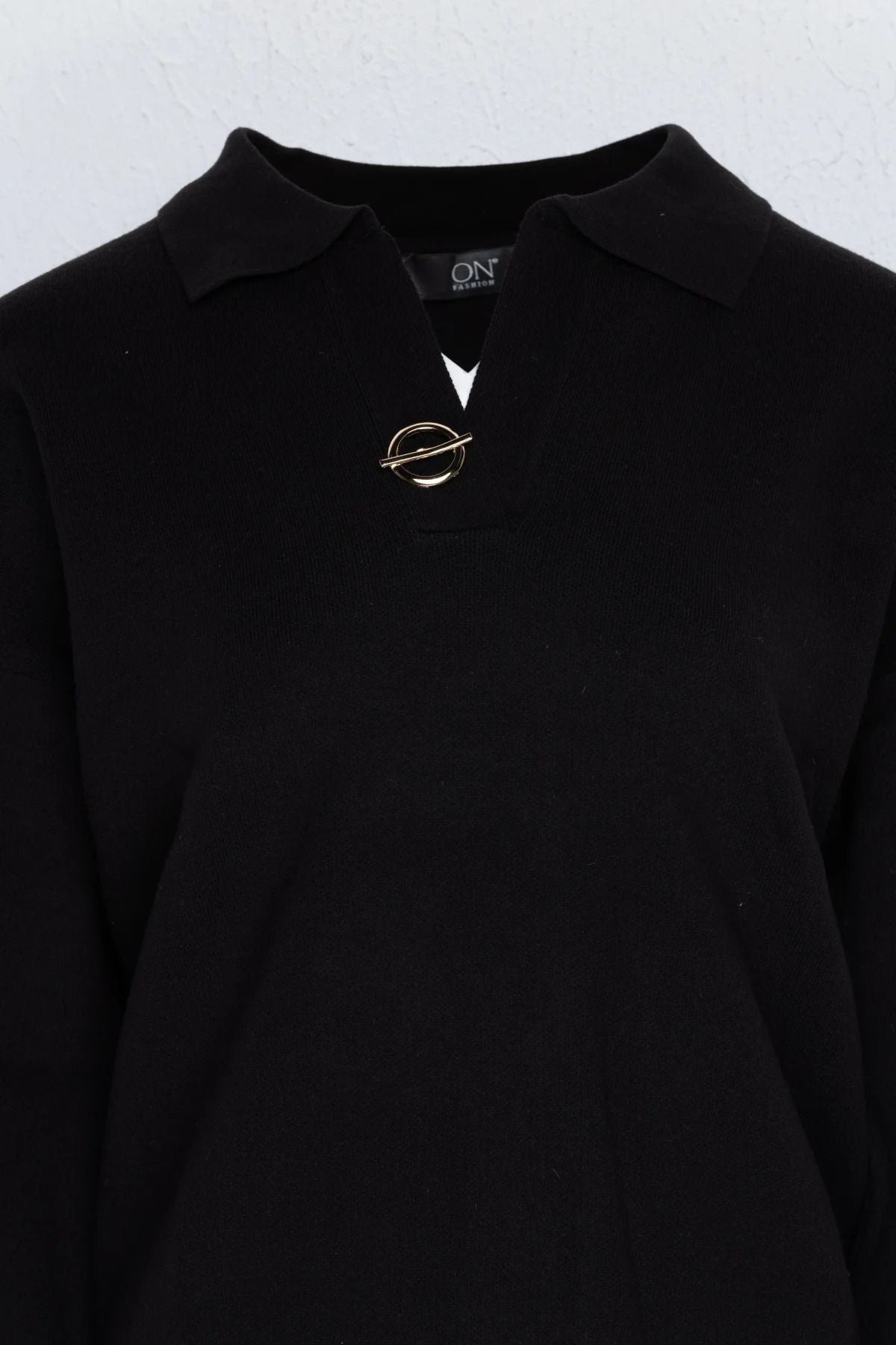 Ürün Özellikleri:; Polo yaka; Triko kumaş; Yakası aksesuarlı; Ürün Kalıbı:Tam Kalıp; Ürün Kalınlığı:Orta; Ürün Boyu:64 cm; Kumaş...