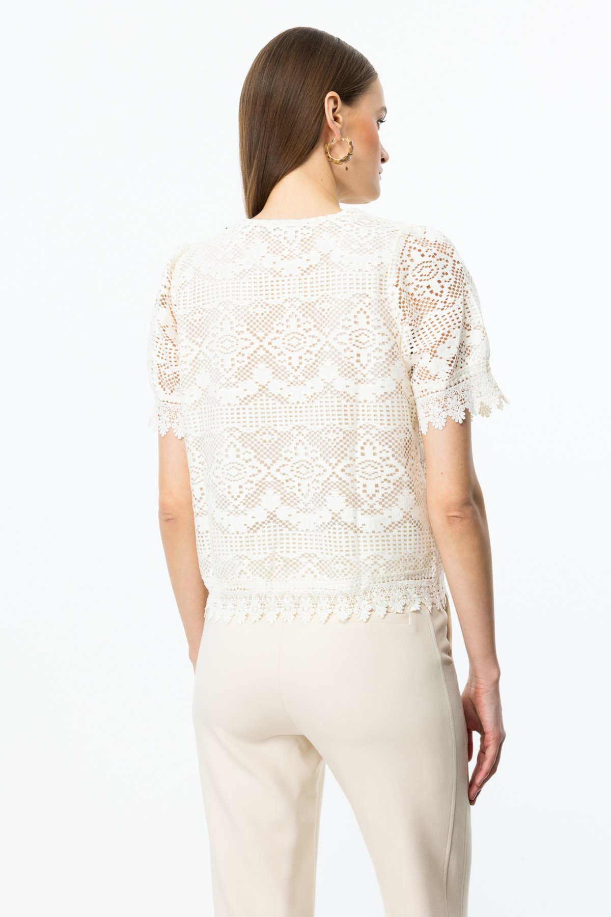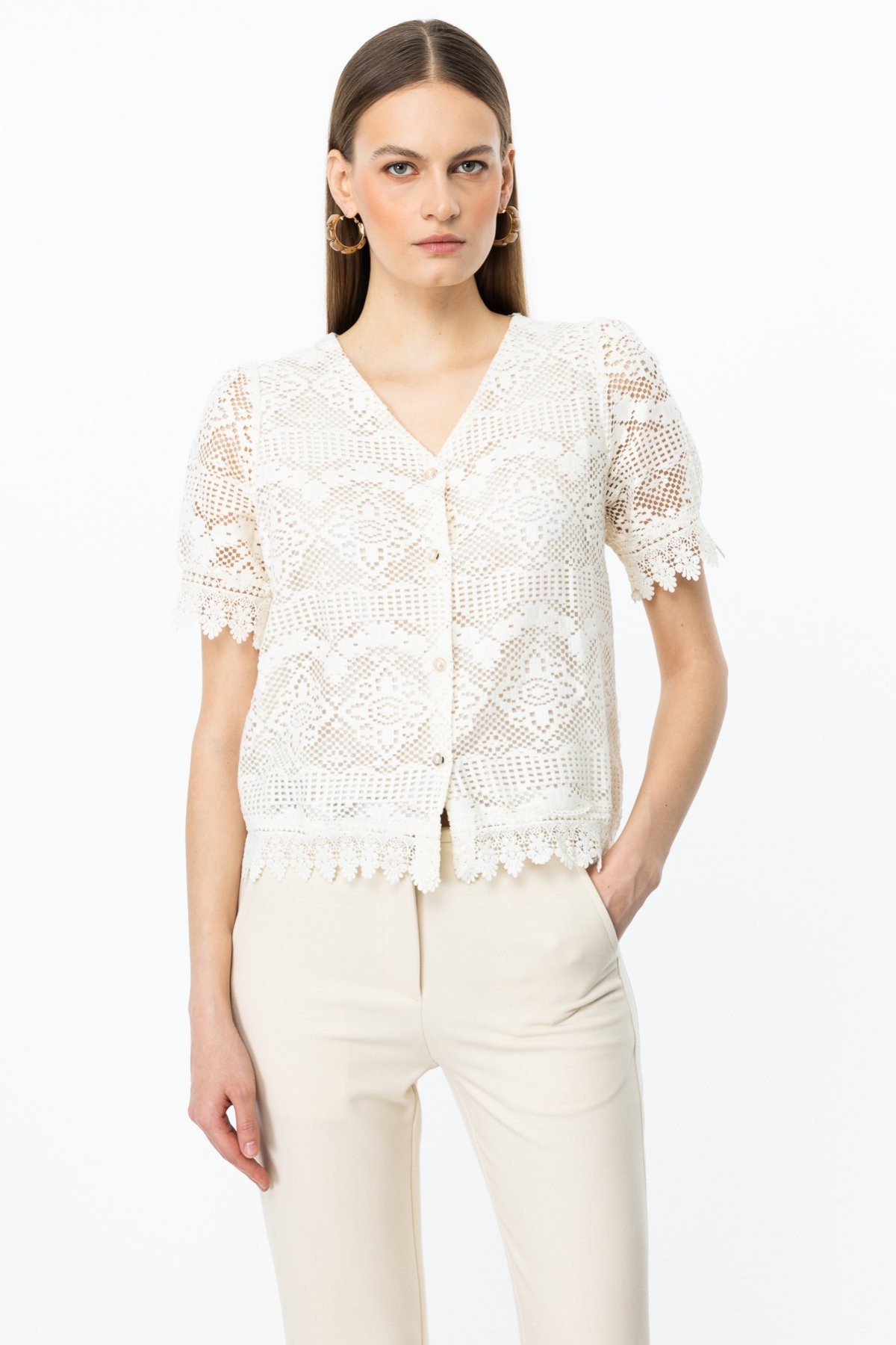 On Kadın V Yaka Kısa Kol Dantel Hırka - Minimalist Tarz