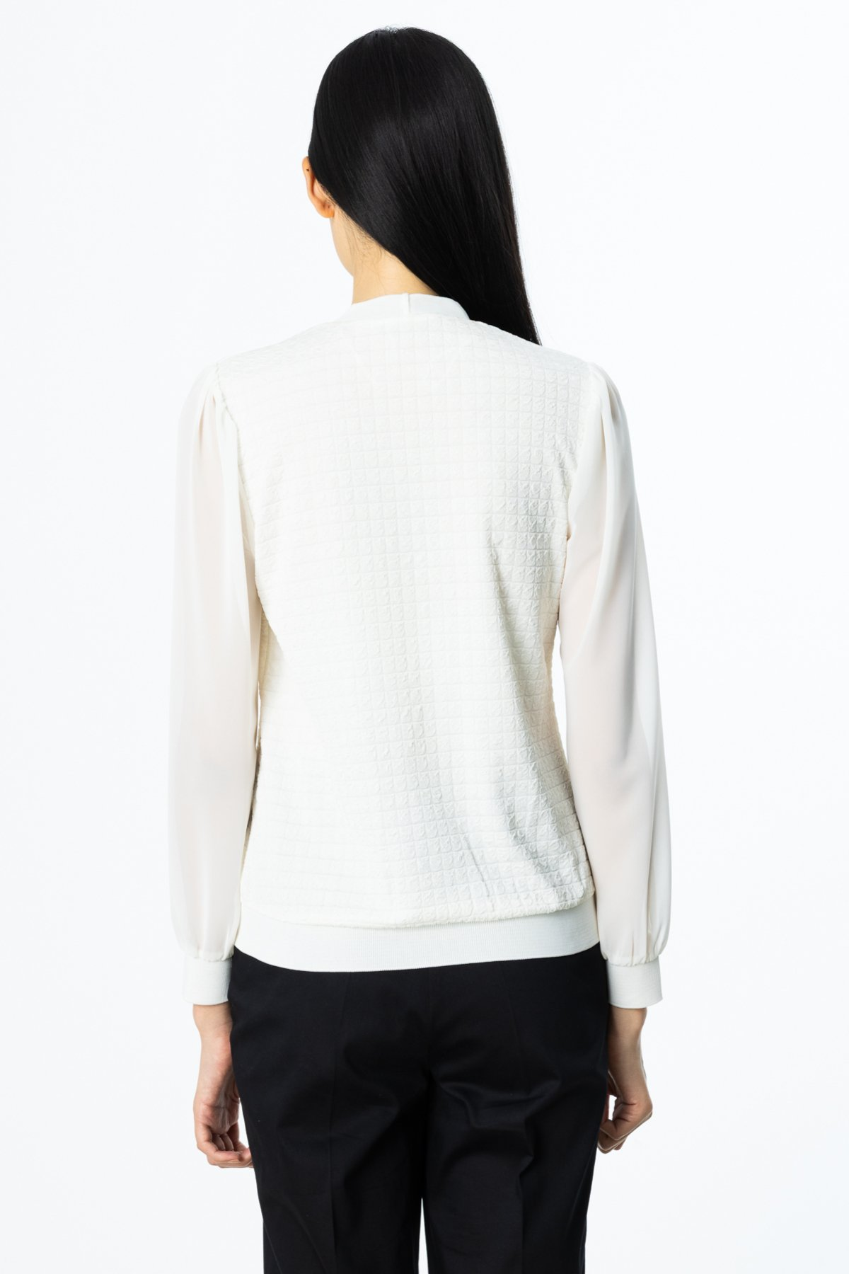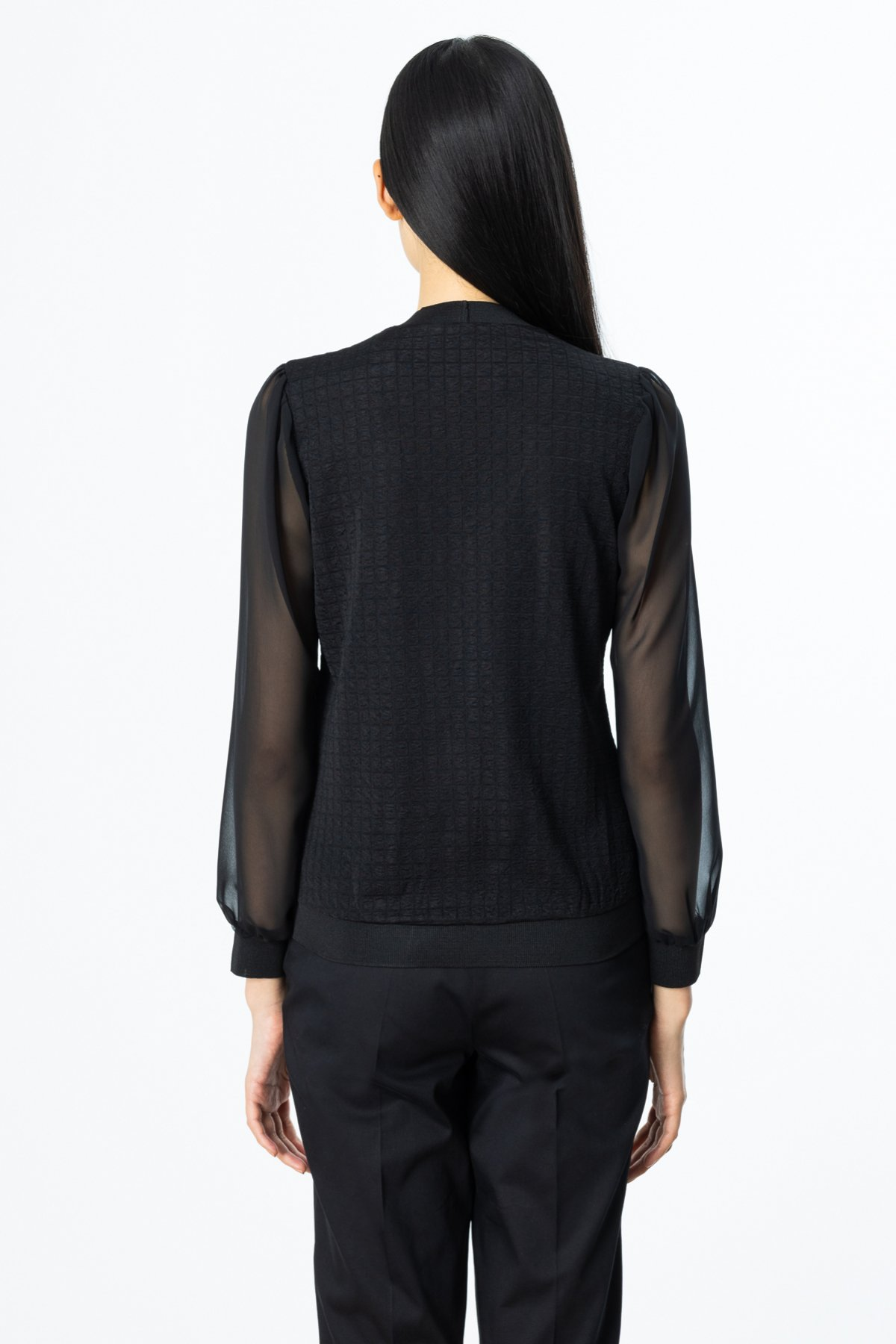 On Kadın V Yaka Uzun Kollu Şifon Detaylı Minimalist Bluz