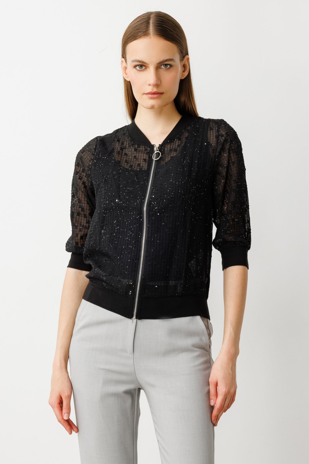 On Minimalist 3/4 Kol Fermuarlı Crop Hırka - Şık ve Rahat