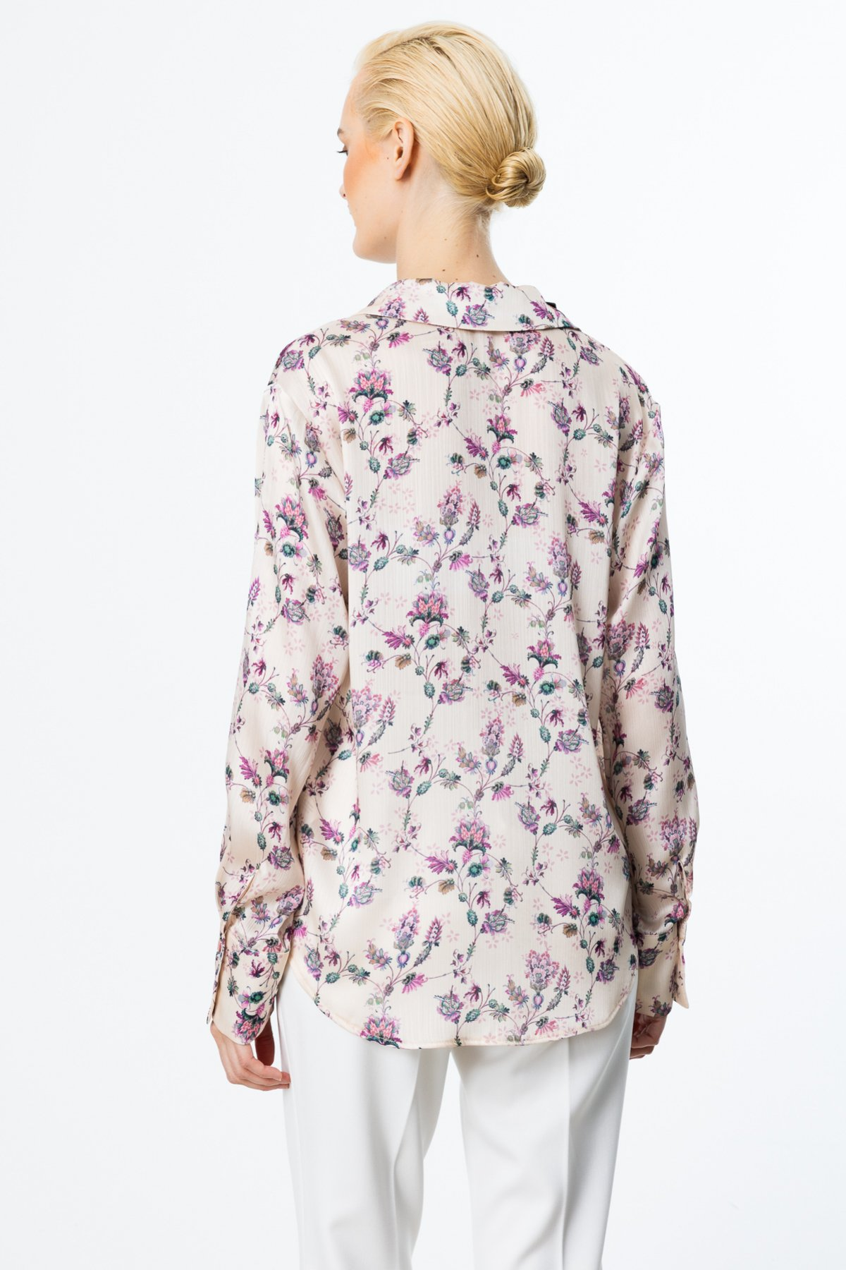 On Minimalist Çiçekli Desen Kadın Gömlek - Uzun Kol - Regular Fit