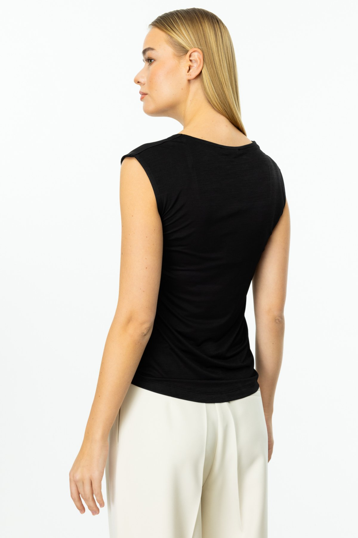 On markasının şık ve minimalist tasarımıyla dikkat çeken bu kadın bluz, gardrobunuzun vazgeçilmezi olacak! Kısa kollu, kare...