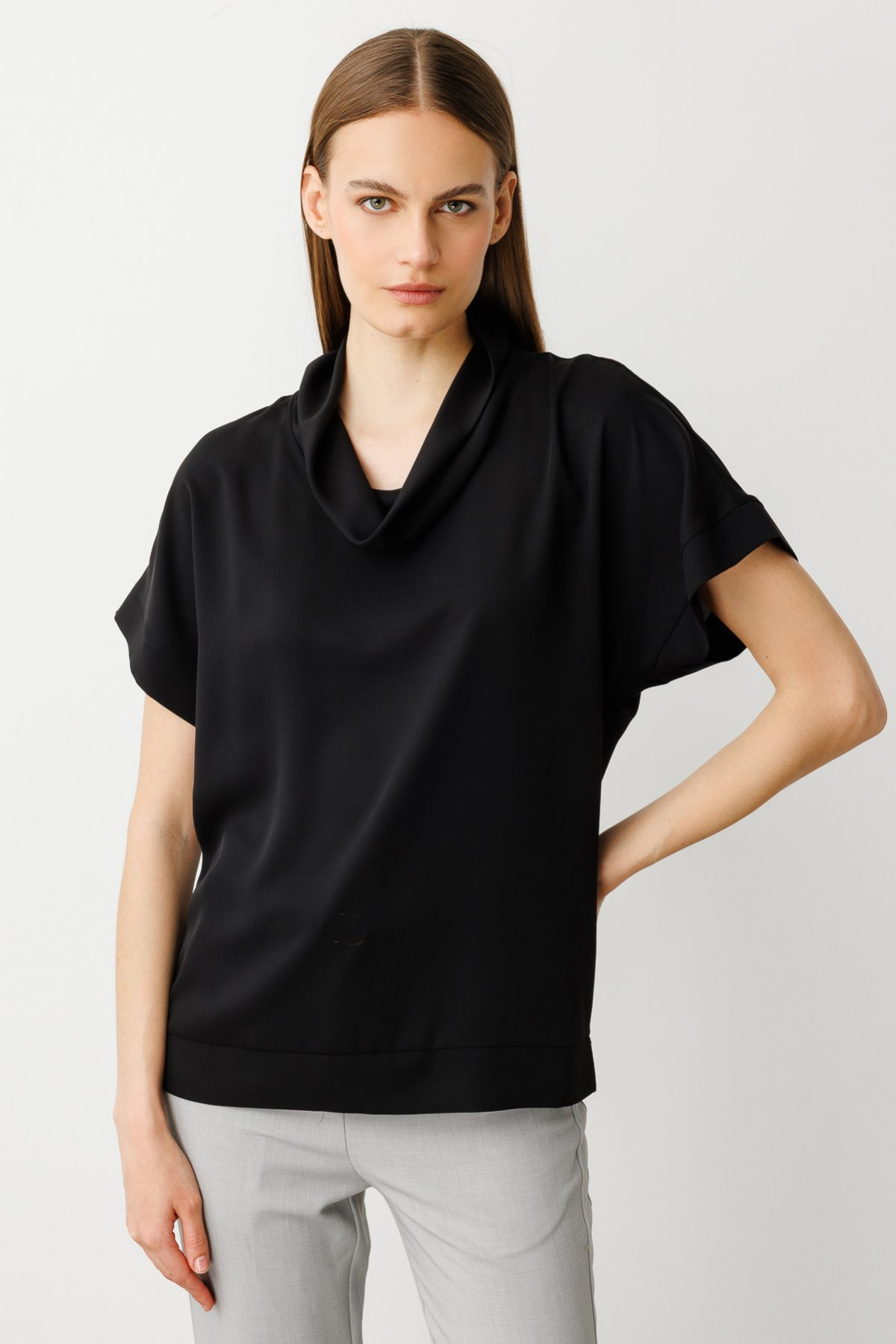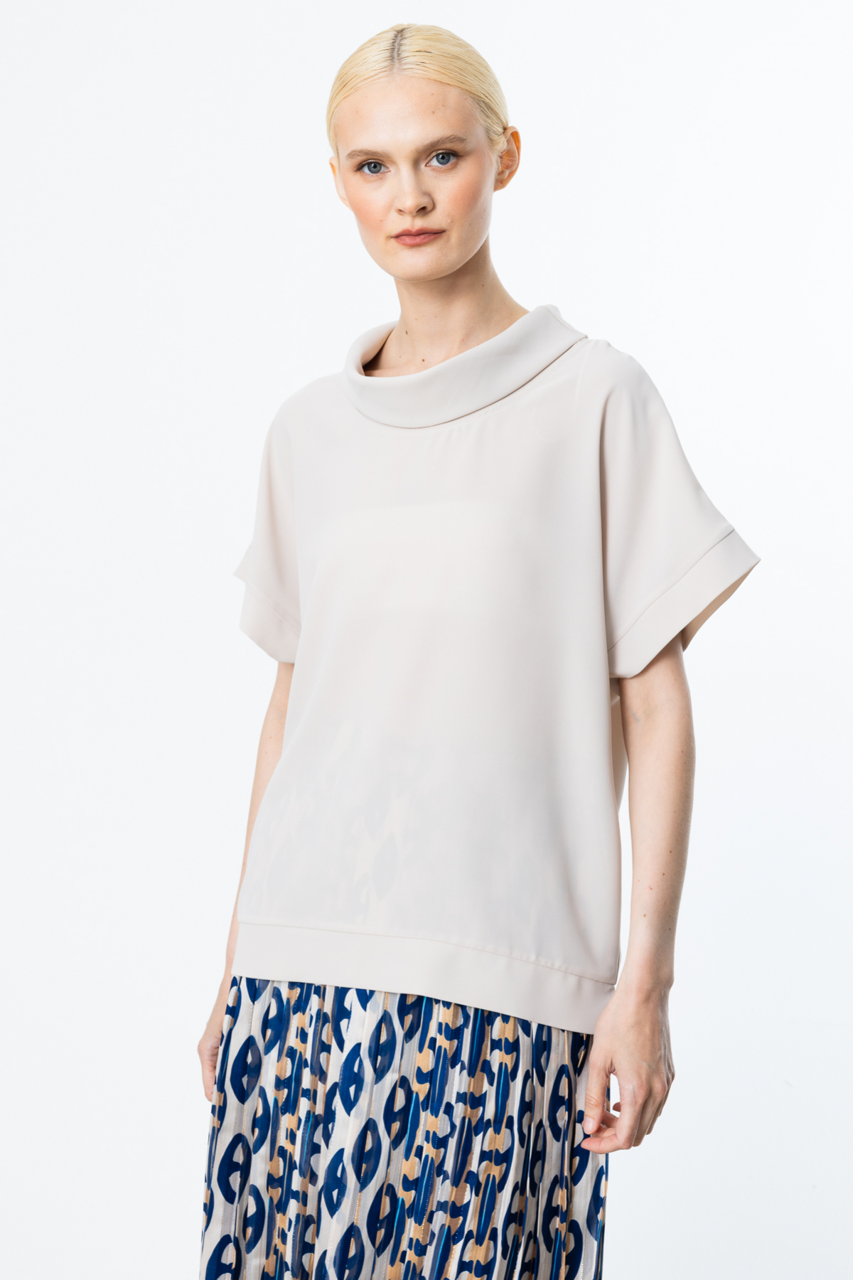 On Minimalist Oversize Kapak Yaka Kısa Kol Kadın Bluz - Günlük Stil