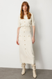 On Süs Düğmeli Midi Triko Etek