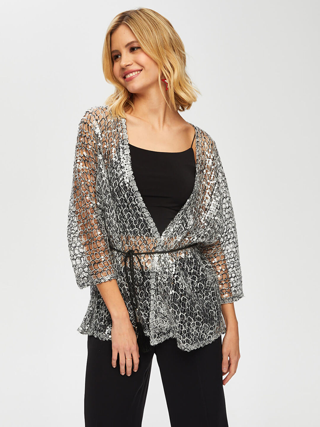Ürün Adı : Payet Detaylı Triko Görünümlü Abiye Ceket S25CKT002%100 Polyester