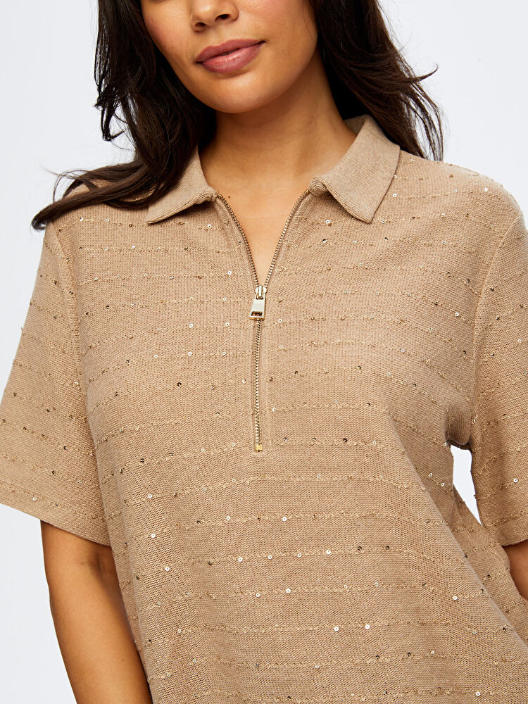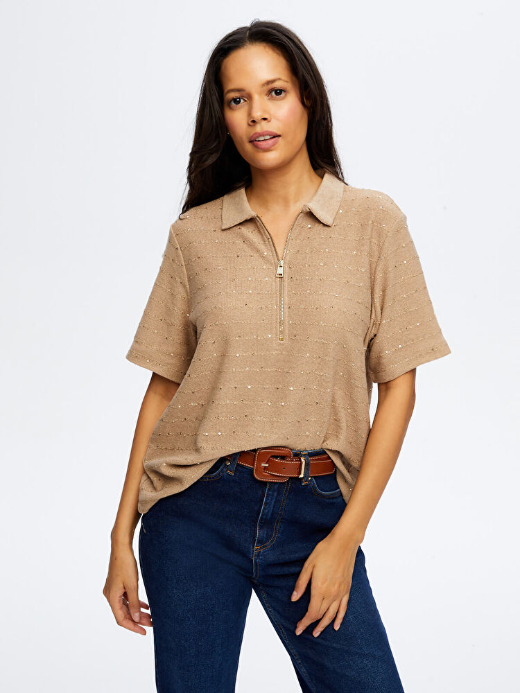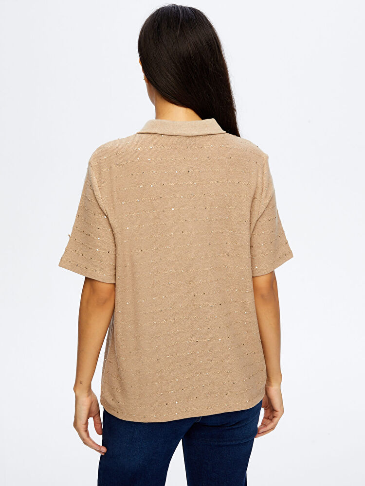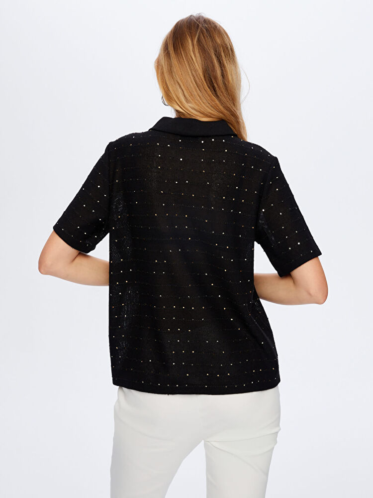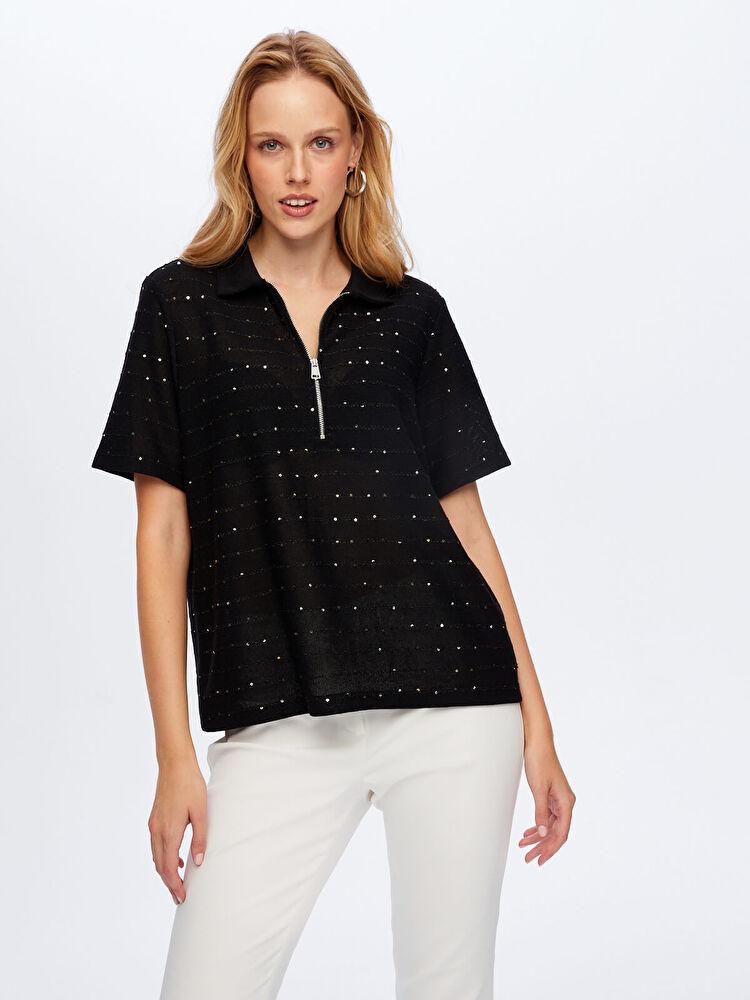 Payet Pul Detaylı Polo Yaka Görünümlü Örme Bluz Faik Sönmez