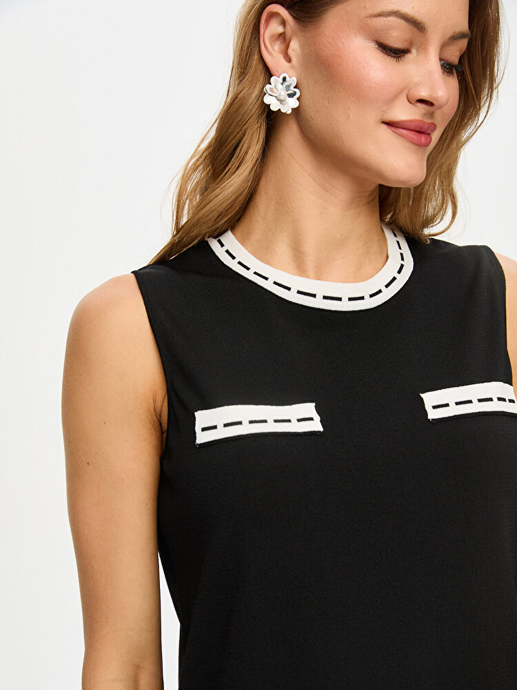 Renk Bloklu Kolsuz Triko Bluz Faik Sönmez