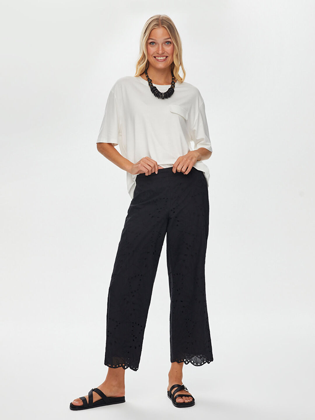 Resort Brode Nakış İşli Yanı Yırtmaçlı Wide Leg Fit Caprii Faik Sönmez