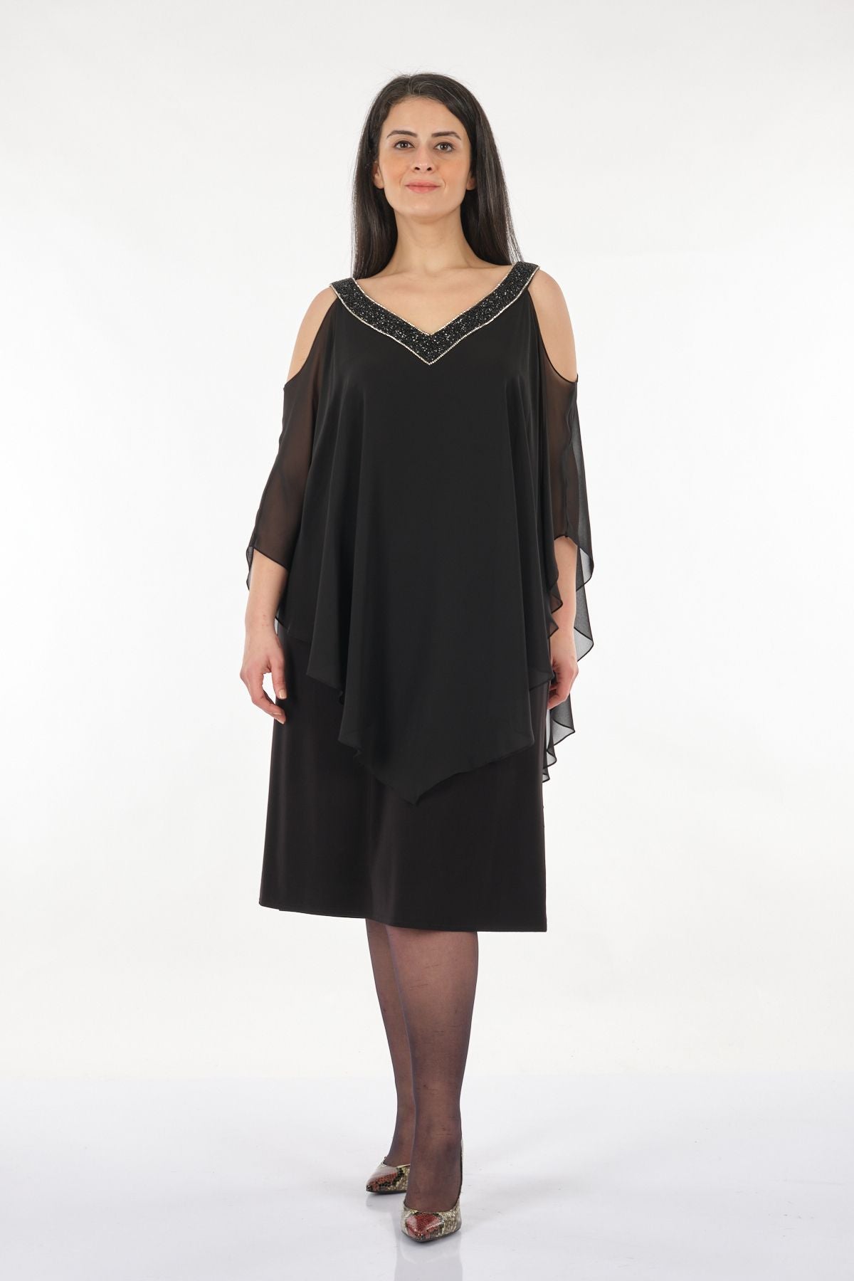 Manken Ölçüleri:; Örnek Beden: 42; Manken Boyu: 167 cm; Ölçüler: 103 / 84 / 110; Kumaş İçeriği:Polyester;