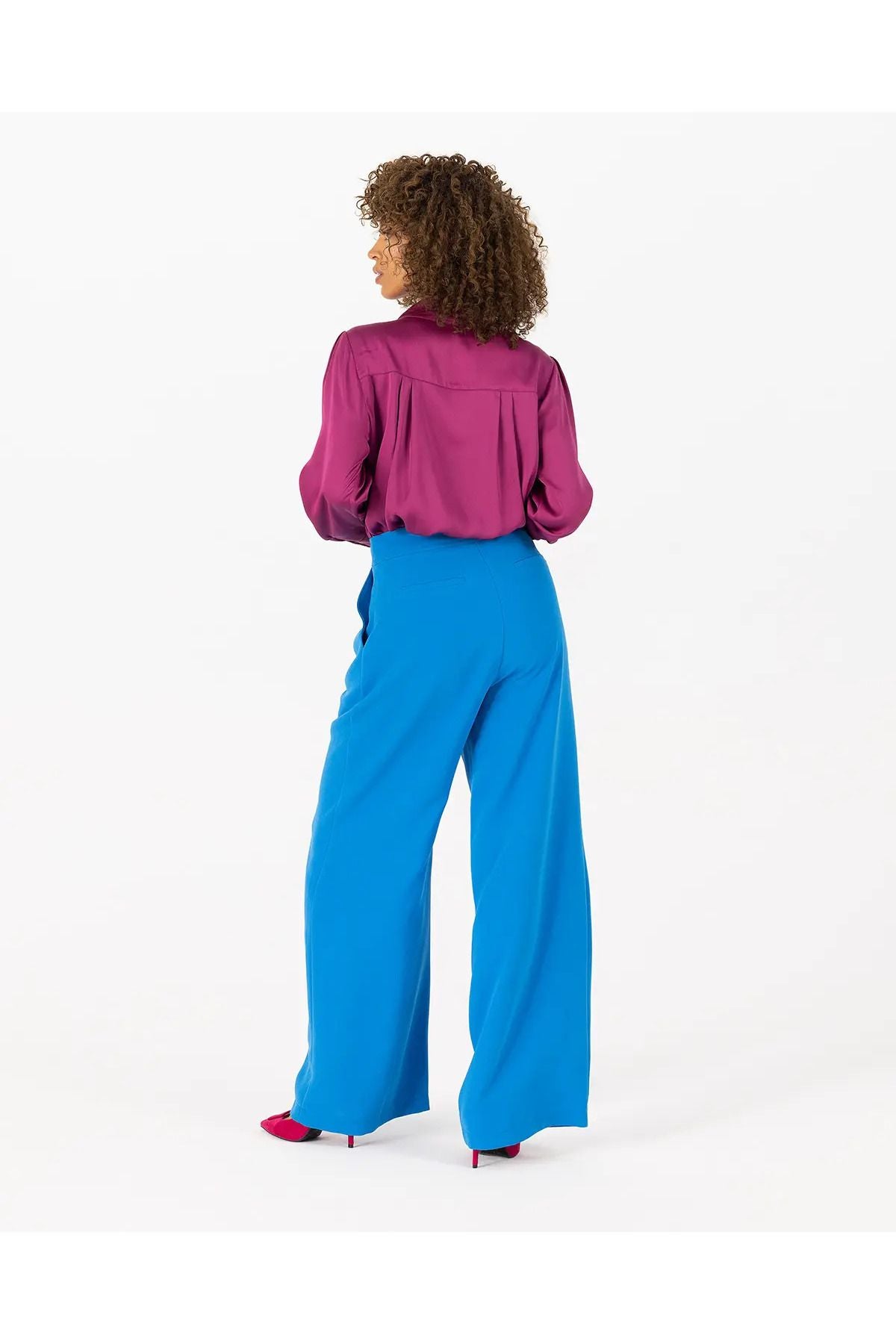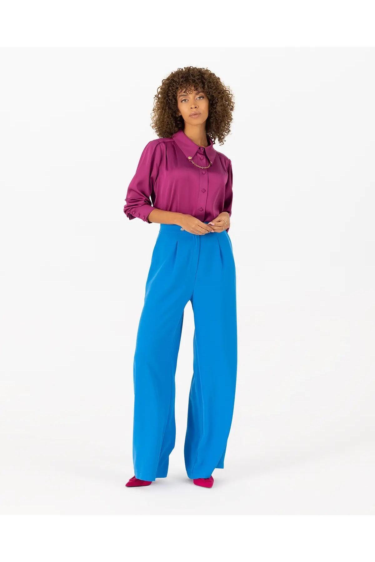 Pliseli oluşuyla modern trendleri yansıtan pantolona, belindeki düğme detayı eşlik ediyor. Gardropların kurtarıcı parçası arasında yer alan...