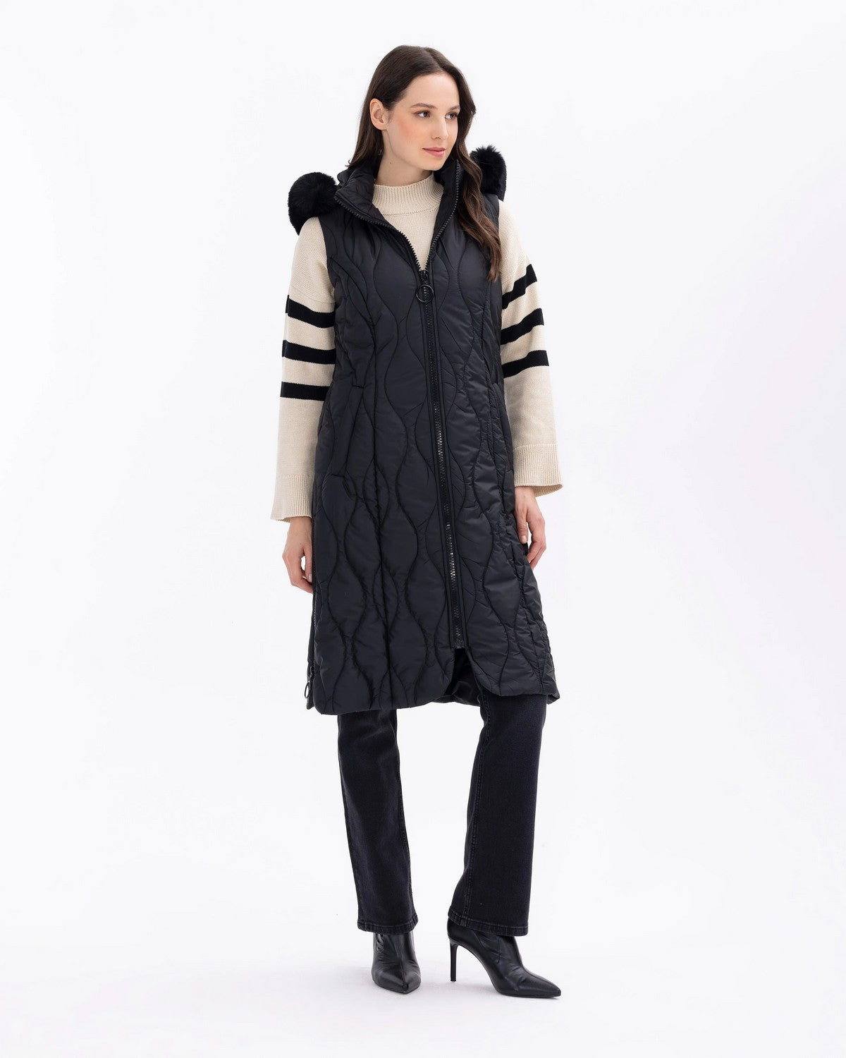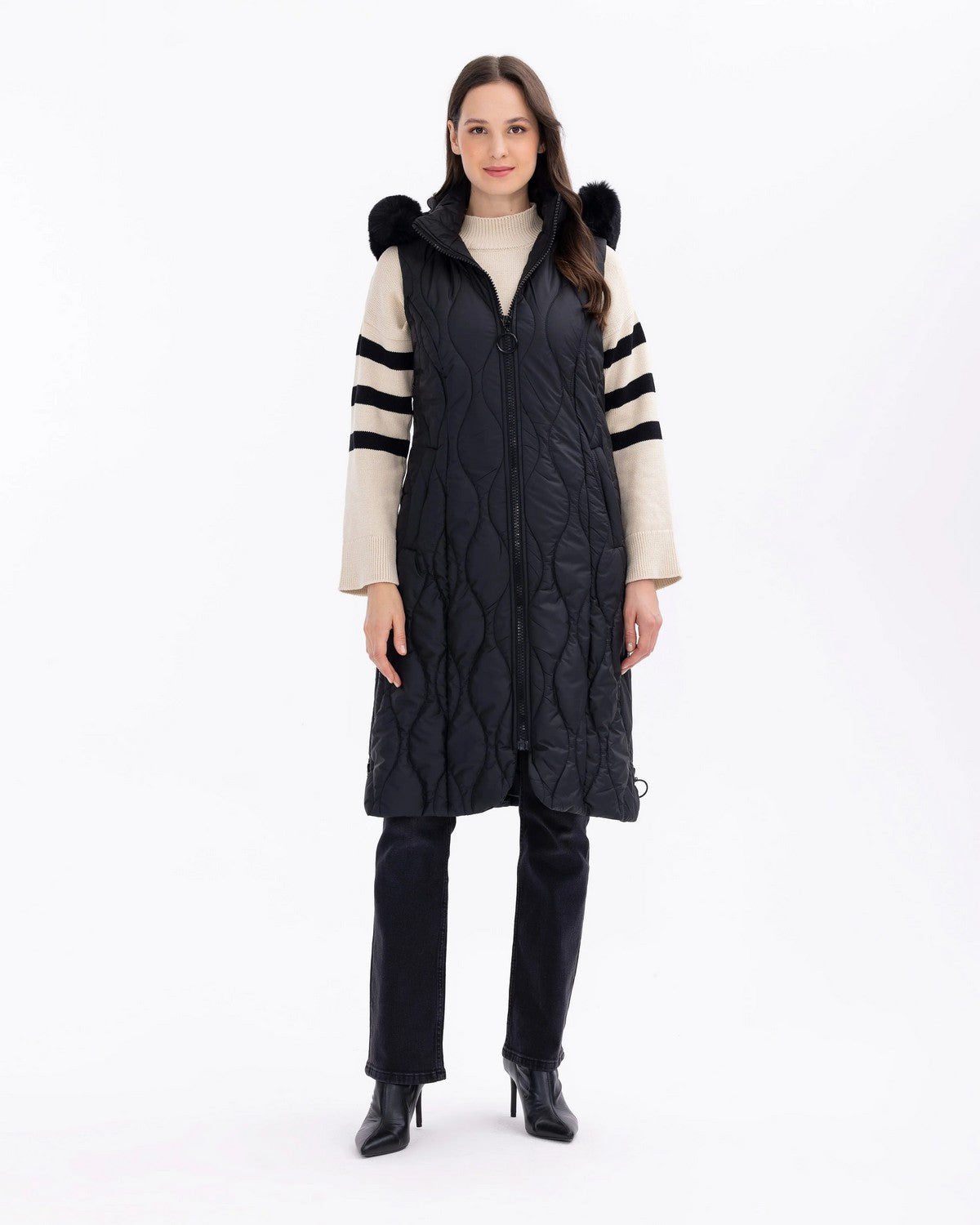 Kürk detaylı fermuarlı anorak yelek, şıklığı ve sıcaklığı bir araya getirir. Fermuarlı ön kısım, giyimde kolaylık sağlar....
