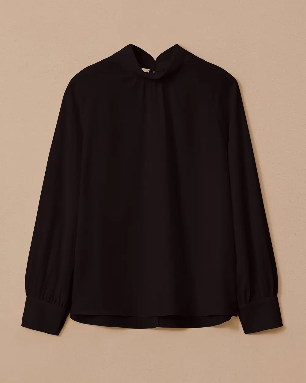 Dik Yaka Pile Detaylı Bluz, şık pileleri ve zarif tasarımıyla kombinlerinizi tamamlar.