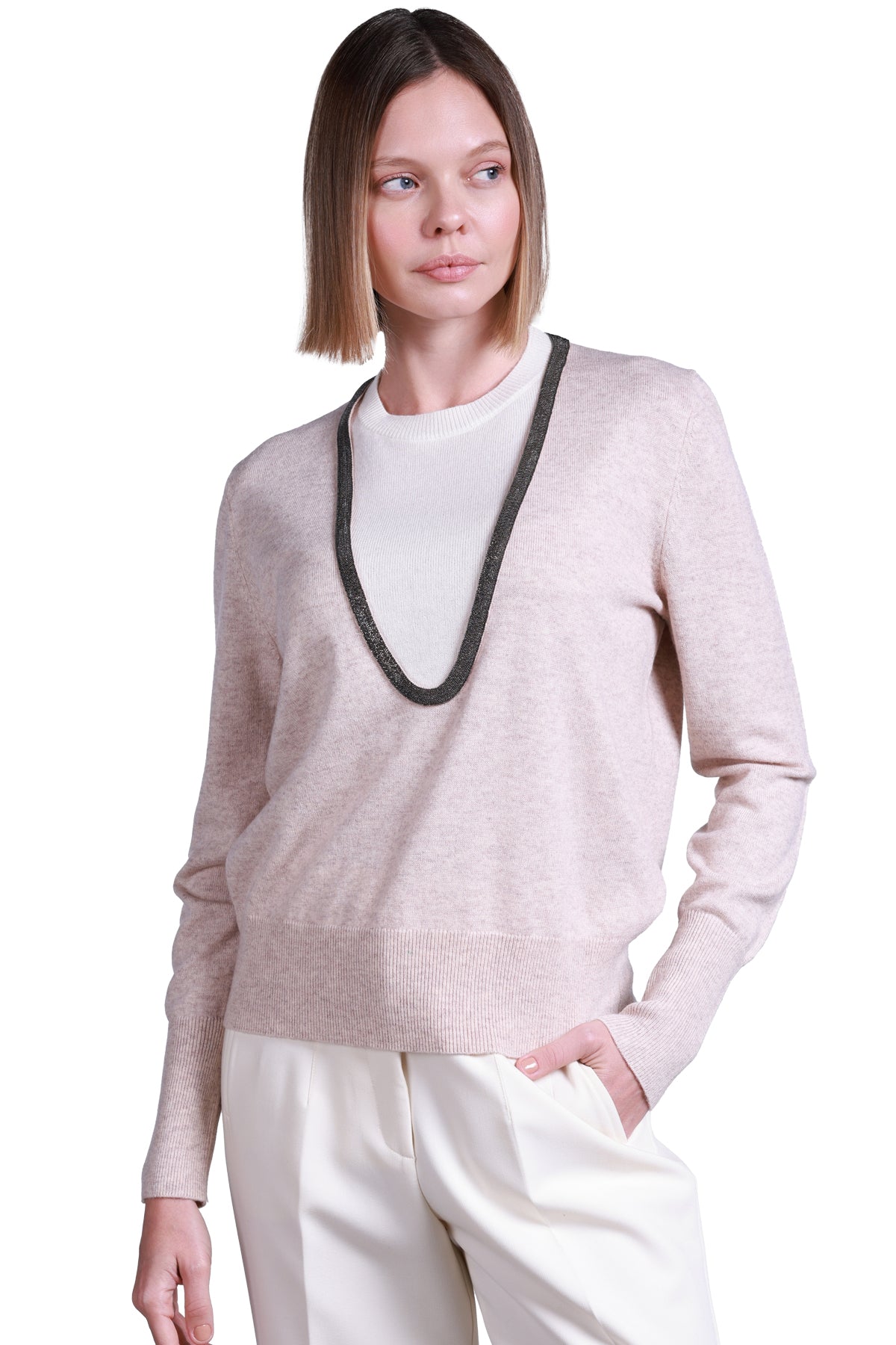 Sempre Kadın Kazak - Minimalist V Yaka, Uzun Kol, Günlük & Ofis