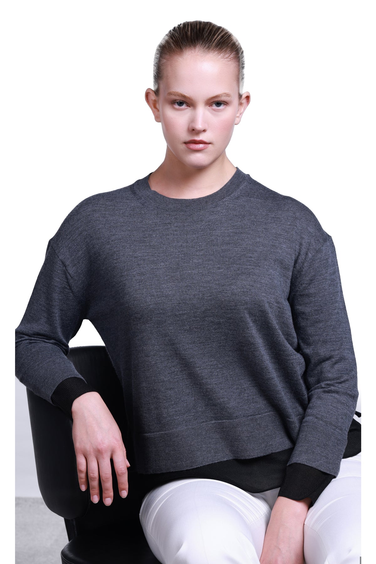 Sempre Oversize Yuvarlak Yaka Uzun Kol Kadın Kazak - Minimalist Tasarım