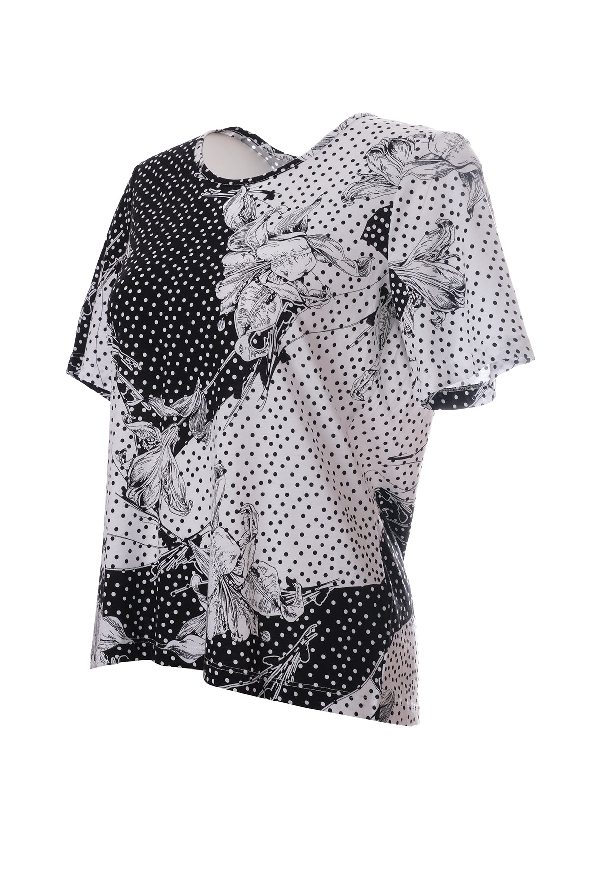 Sıfır Yaka Desenli Kısa Kol T-Shirt Cnl