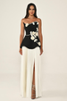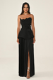 Straplez Çiçek Aksesuarlı Üstü Krep Eteği Piliseli Şifon Abiye Elbise