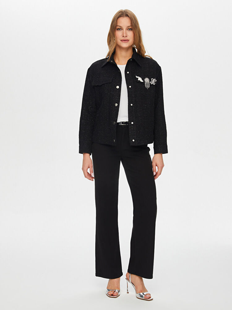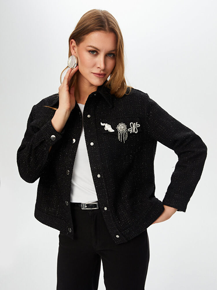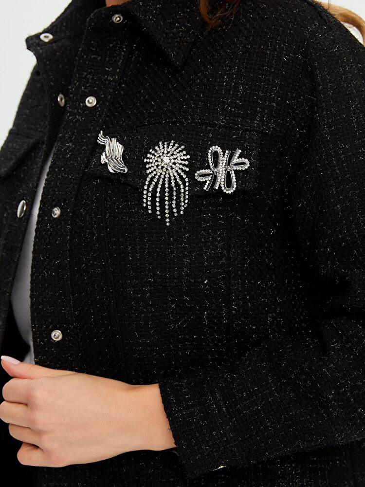 Taşlı Broş Detaylı Kendinden Simli Track Ceket Faik Sönmez
