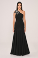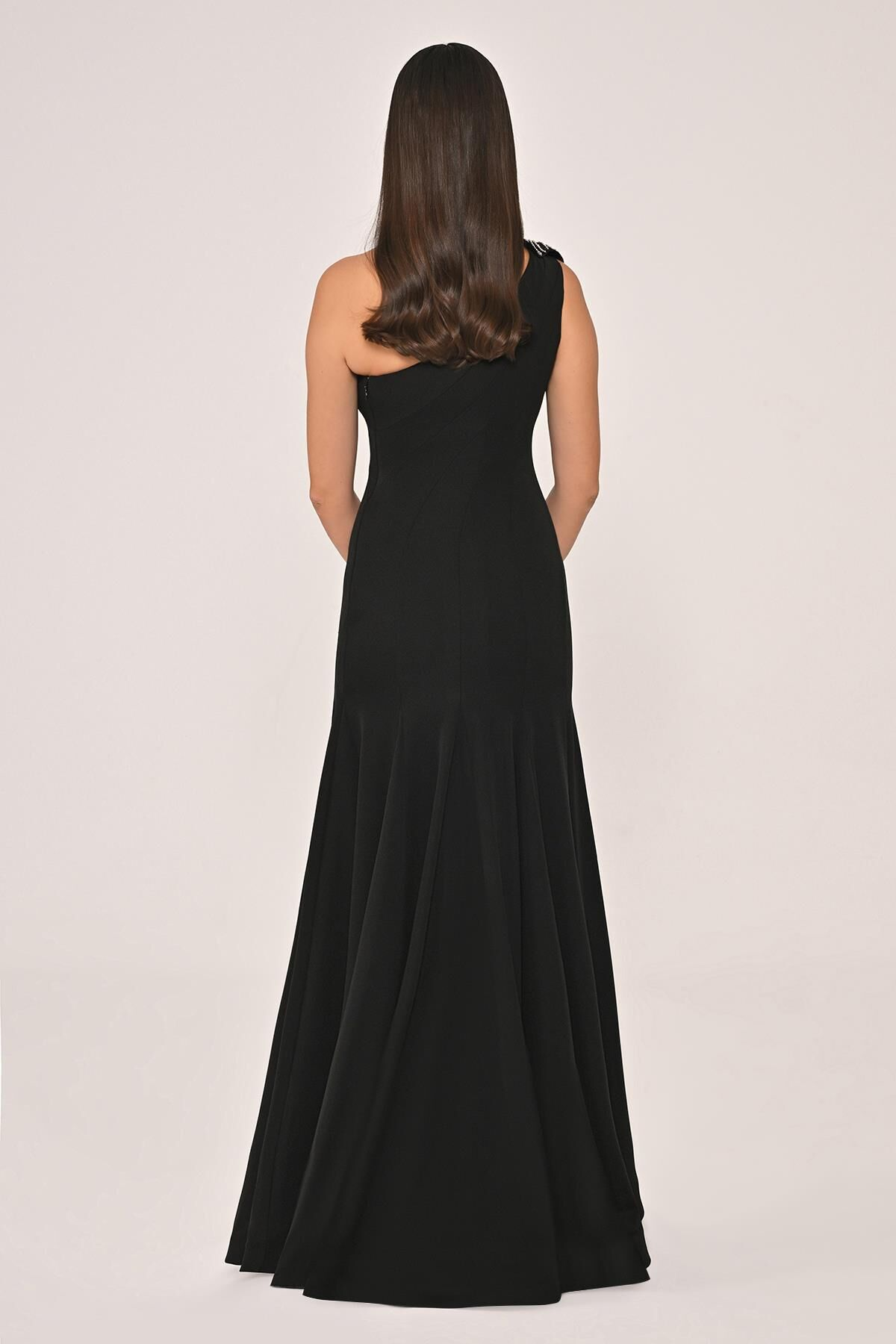 Tek Omuz Çiçek Aksesuarlı Krep Uzun Elbise