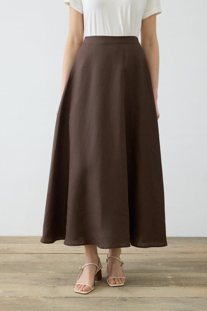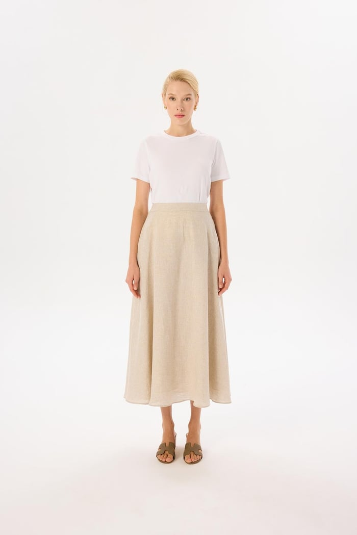 Terzi Dükkanı Minimalist Midi Keten Etek - Yüksek Bel - Günlük & Şık