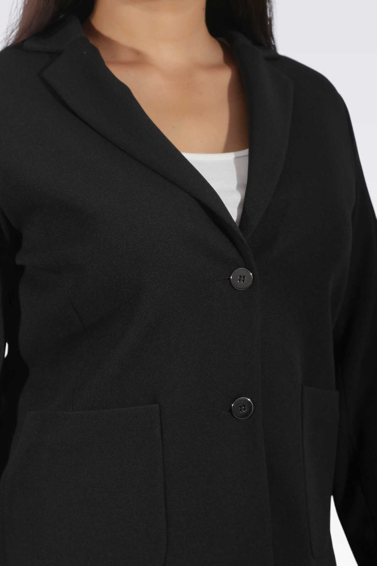 Kumaş ve Model ÖzellikleriKrep dokulu esnek kumaşKonforlu giyim imkanıMidi boyMetal düğmeTek ceketKumaş İçeriği%95/5 Poliester/Elastan