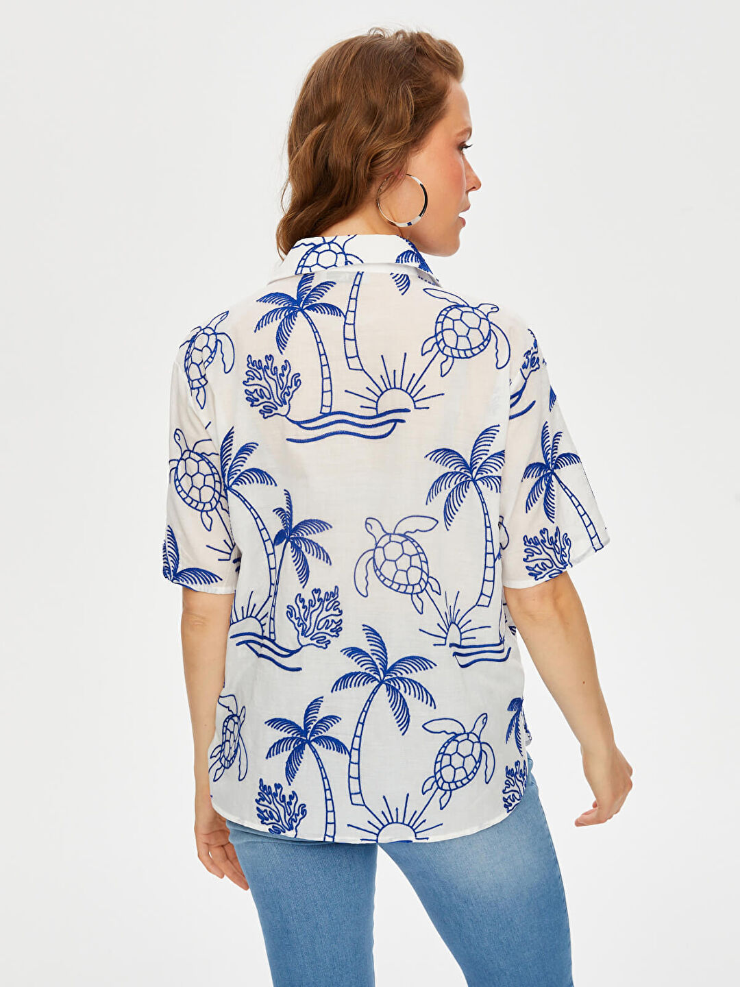 Ürün Adı : Tropik Brode Nakışlı Kısa Kol Pamuk Vual Gömlek S25GML032