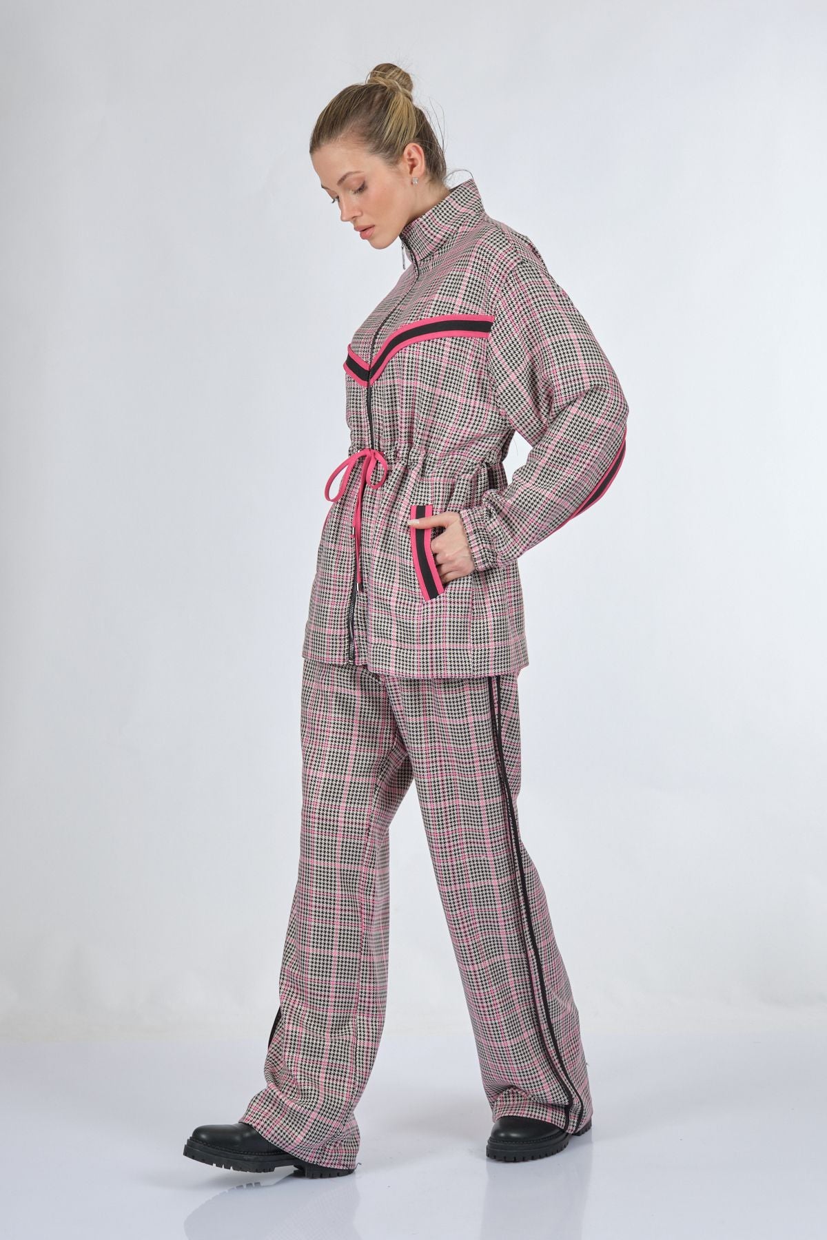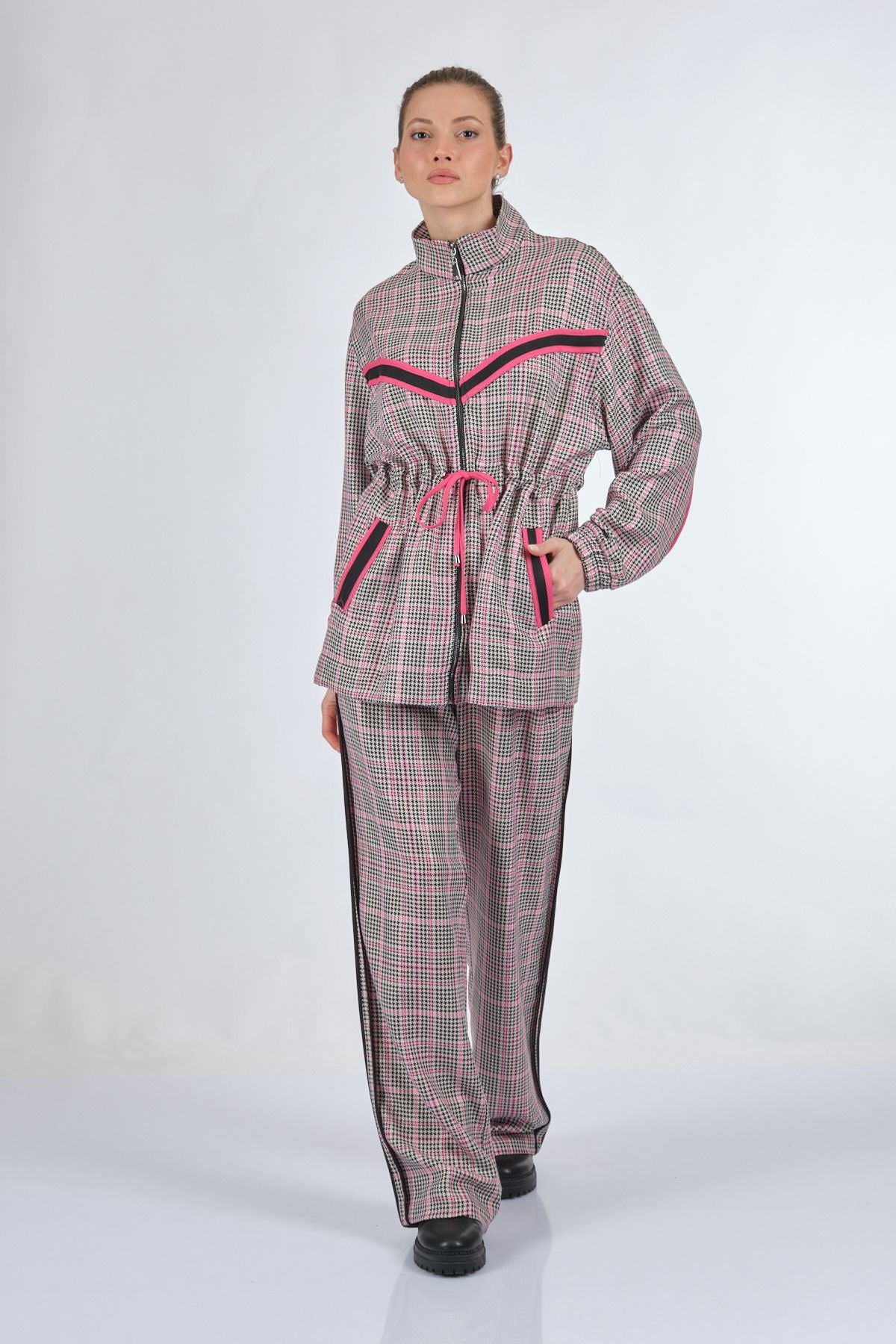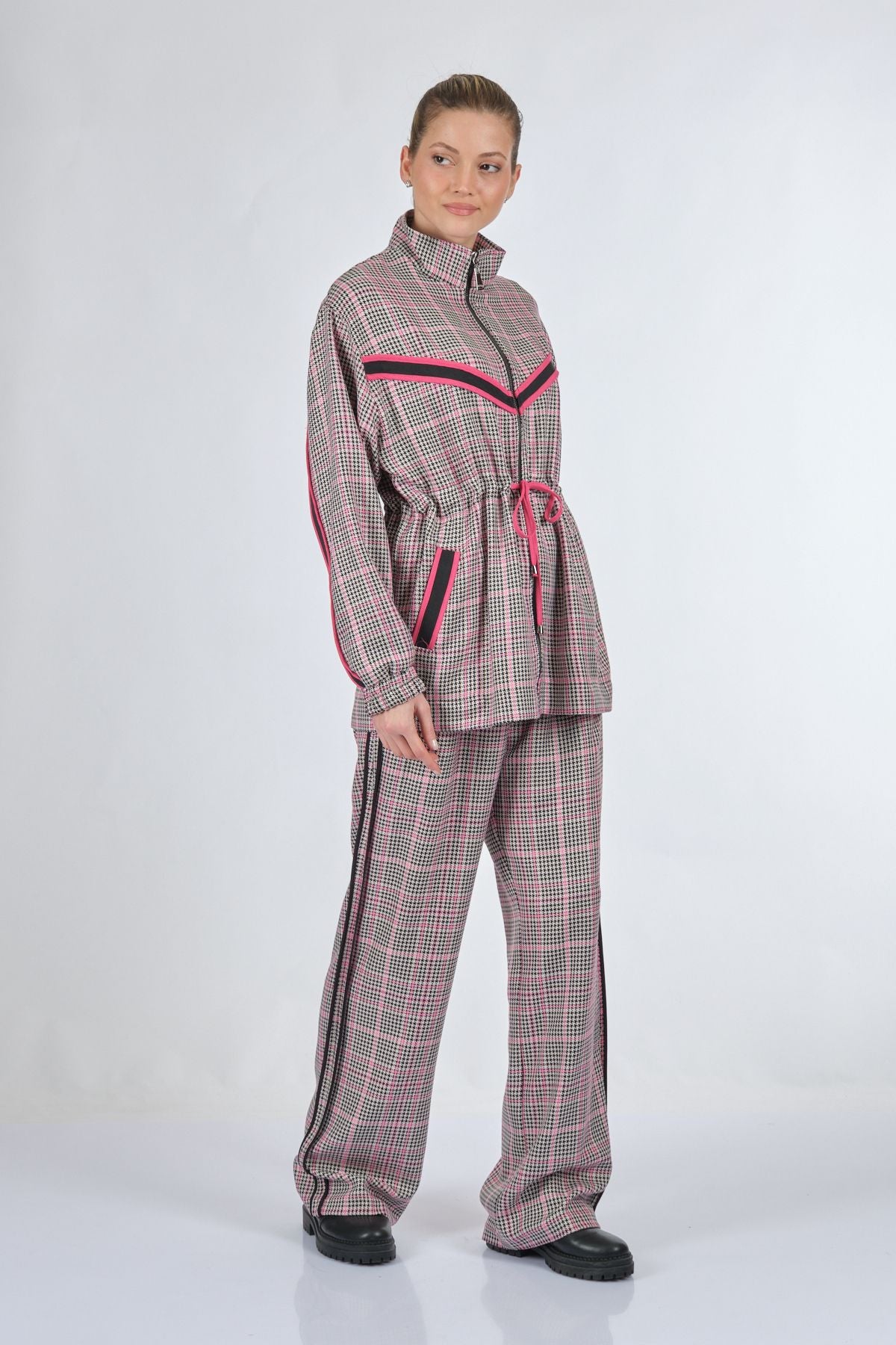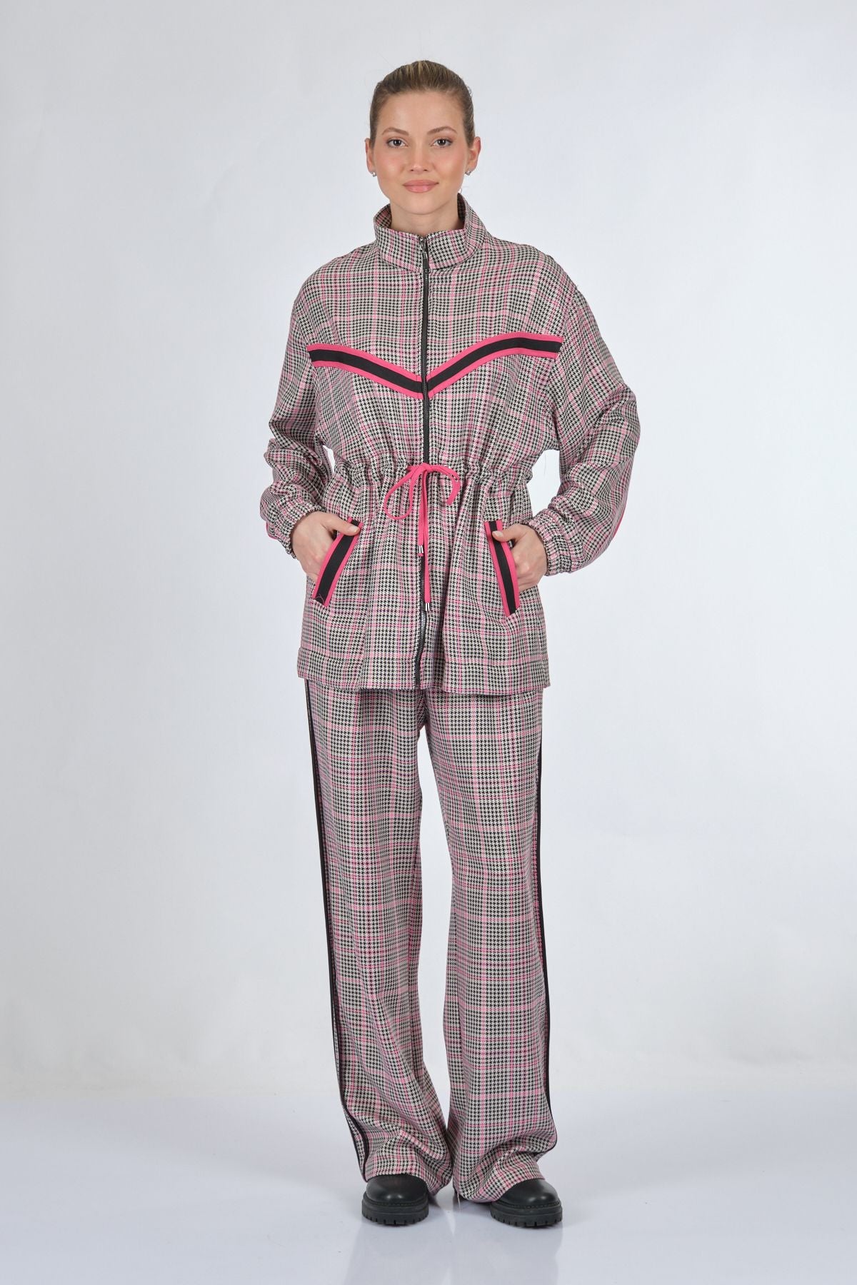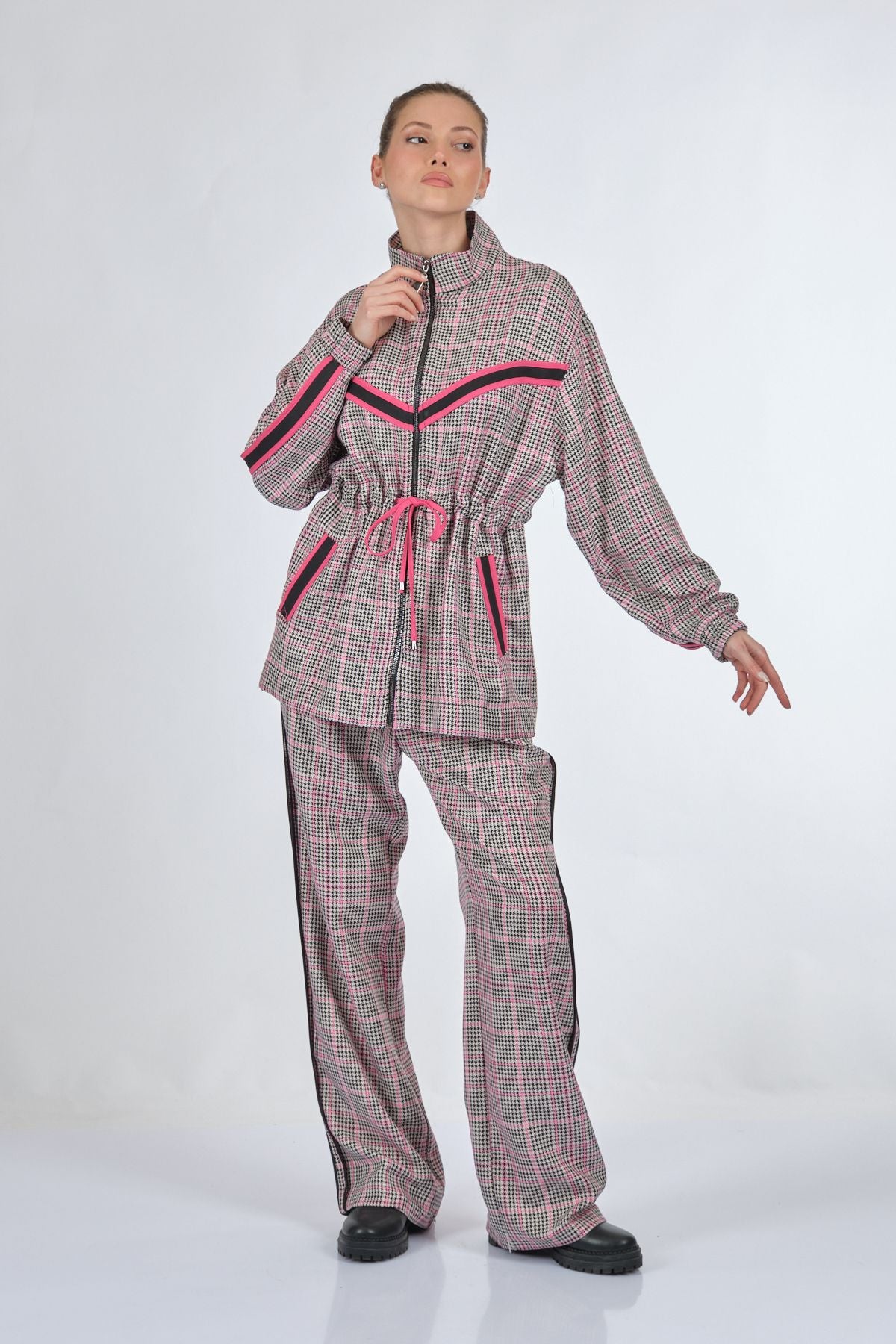Manken Ölçüsü : Kilo : 52 kg / Boy : 1.73 cm / Göğüs : 86 cm / Bel : 65 cm / Basen : 92 cm / Beden : S; Kumaş İçeriği:%62 polyester %35 viskon %3 elastan