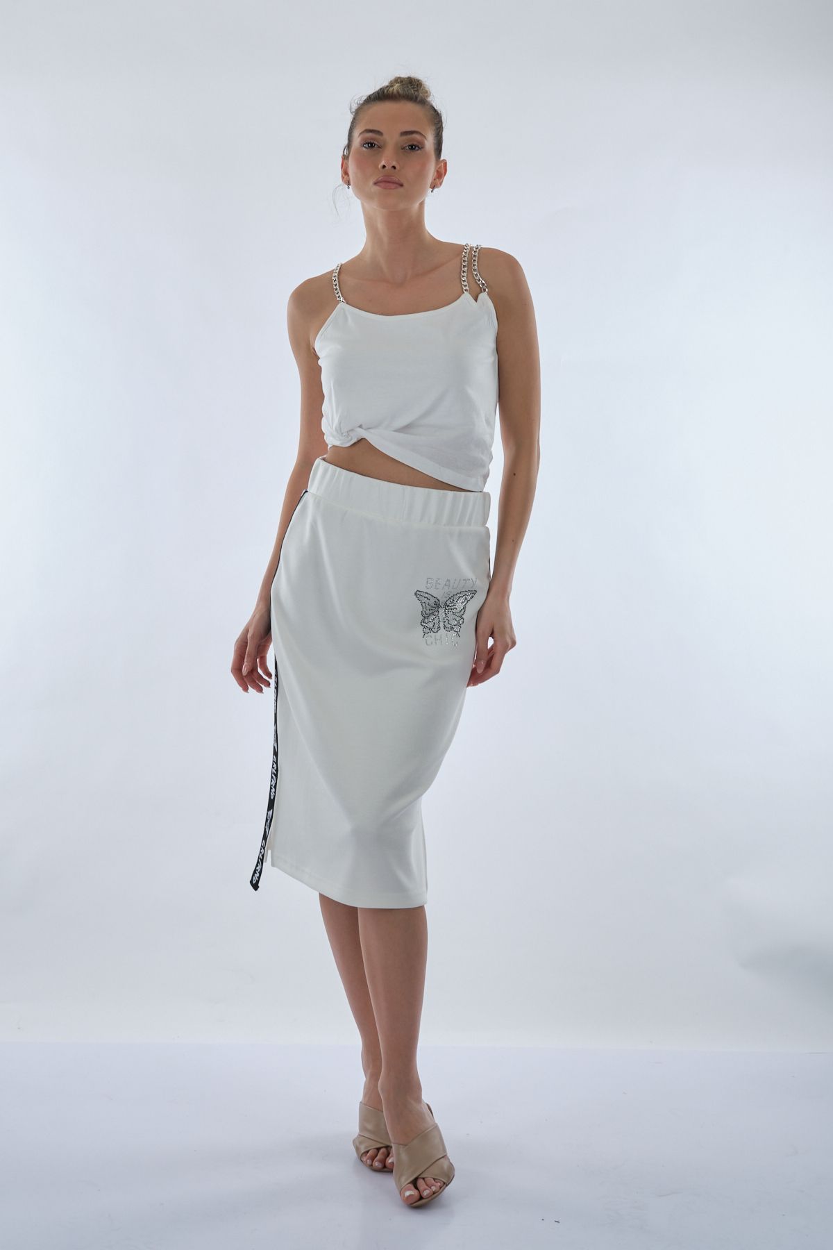 Manken Ölçüsü : Kilo : 52 kg / Boy : 1.73 cm / Göğüs : 86 cm / Bel : 65 cm / Basen : 92 cm / Beden : S; Kumaş İçeriği:% 100 Pamuk