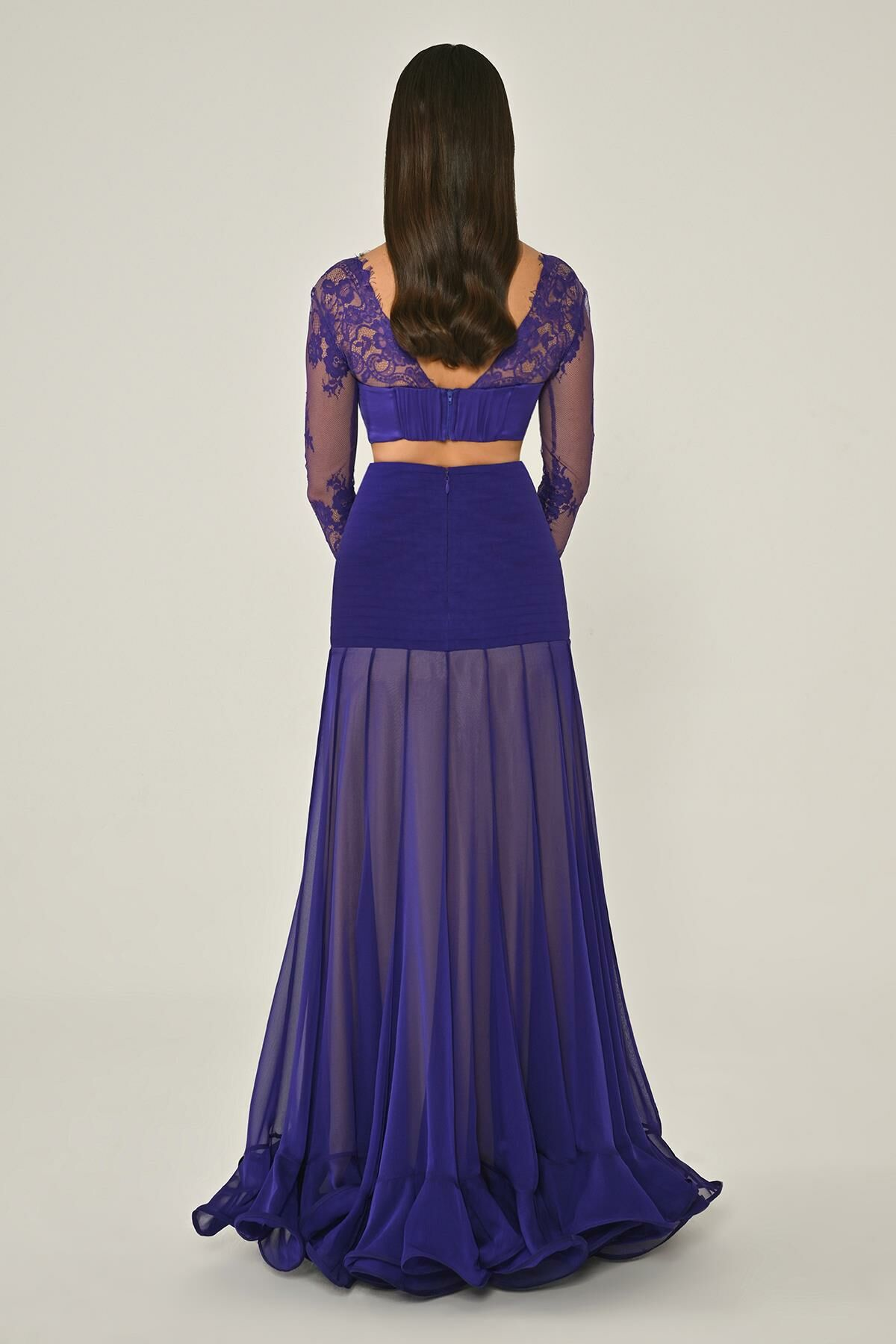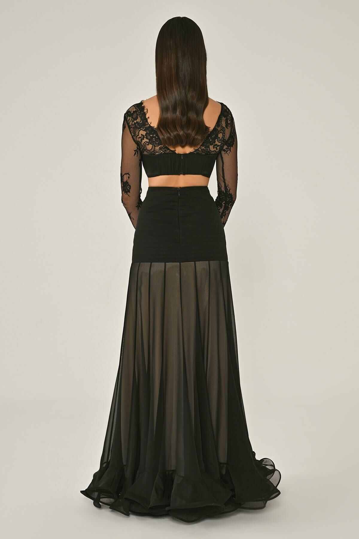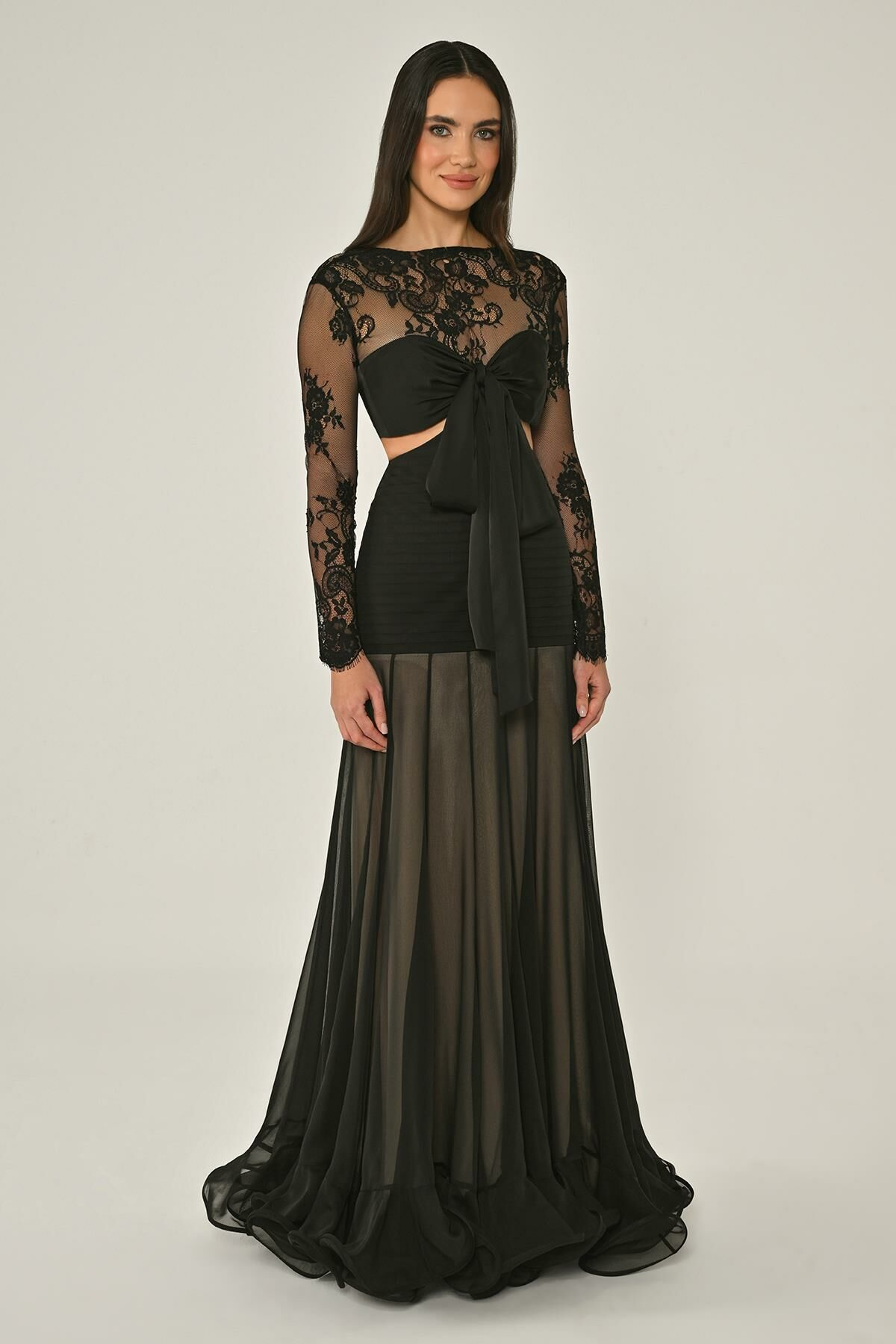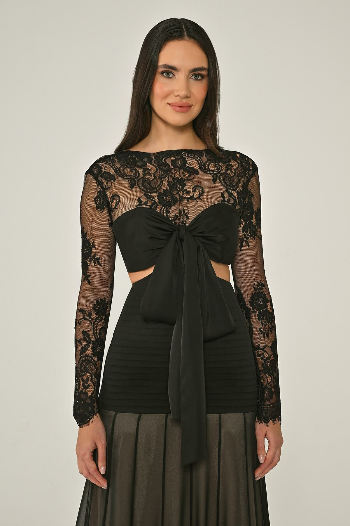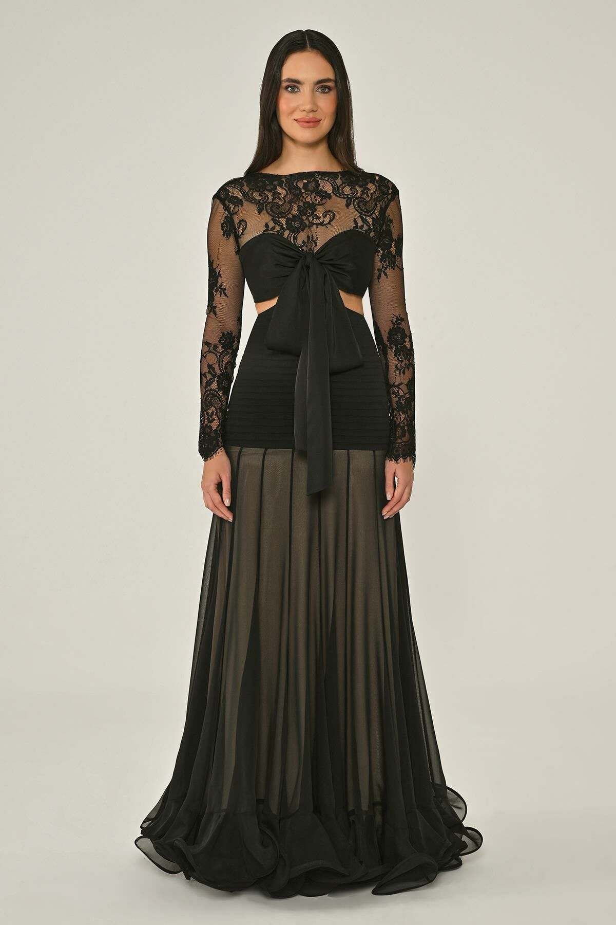 Üst Dantel Göğüs Saten Bağlamalı Eteği Şifon