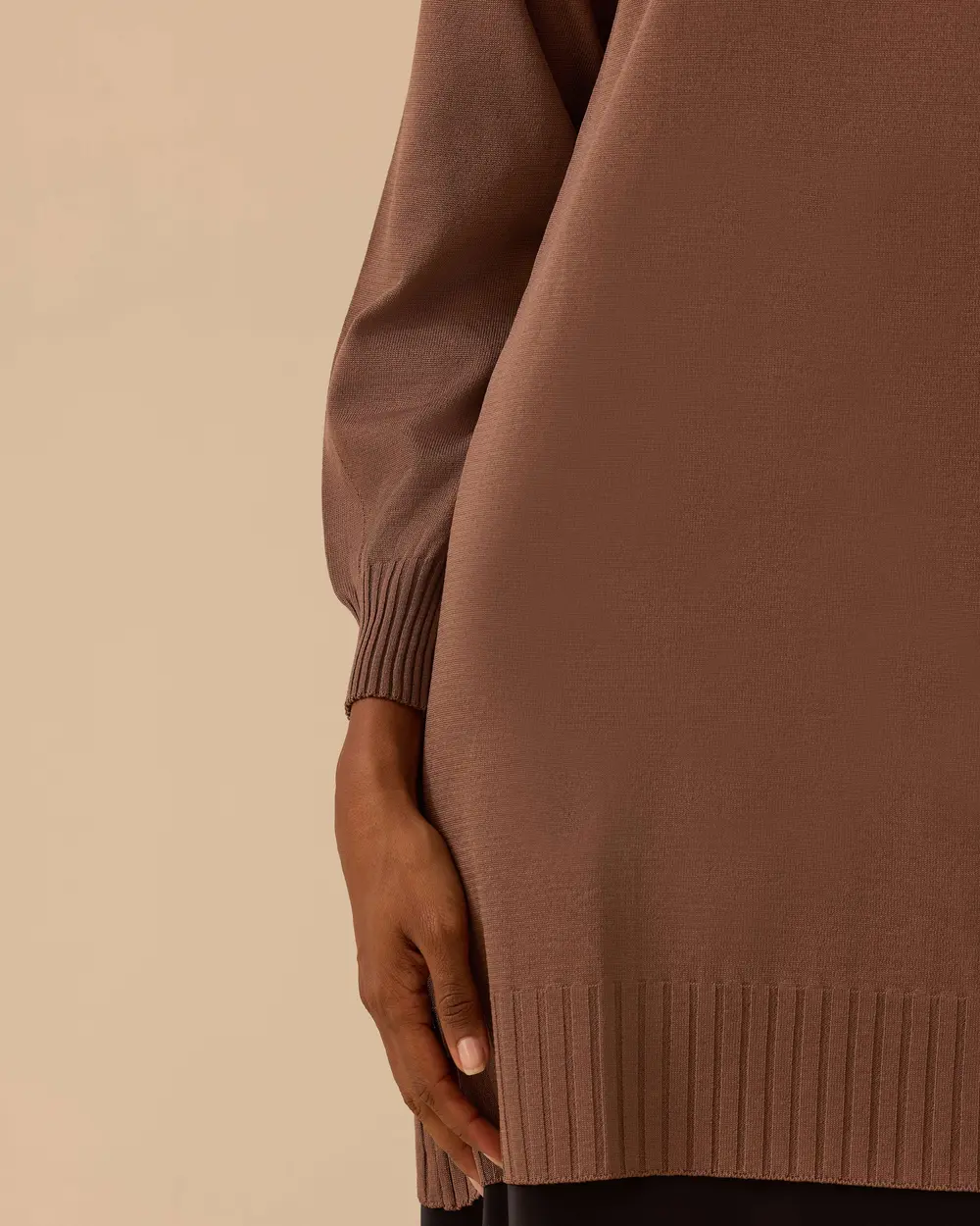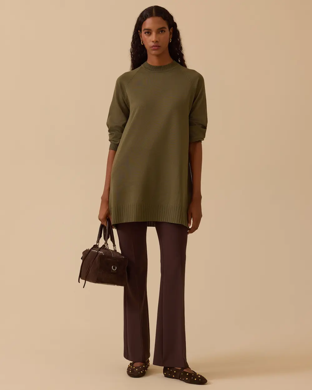 Uzun Kollu Basic Triko Tunik, rahat kalıp, bisiklet yaka ve ribanalı detaylarıyla günlük şıklık sunar.